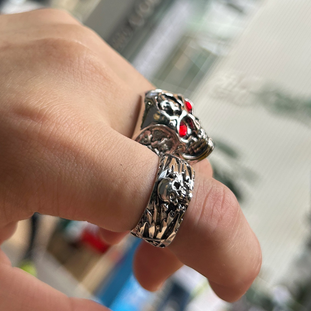 Cross-border personality trend red-eye horror skull ring street punk exaggerated all-match alloy ring wholesale