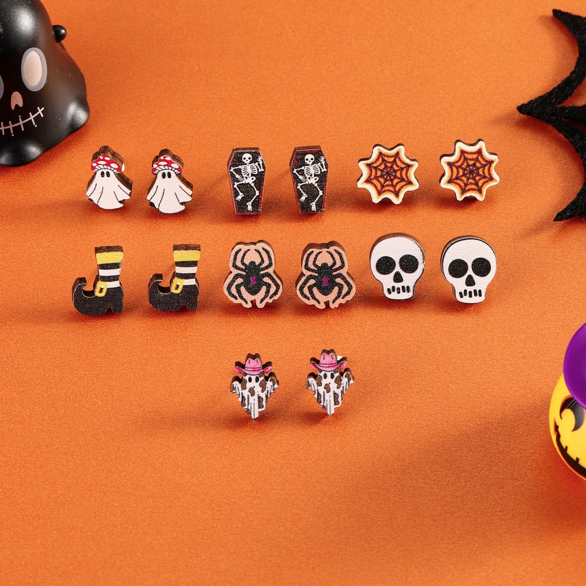 Cross-border explosions Halloween series earrings suit horror funny black cat pumpkin head earrings 9 sets wholesale women