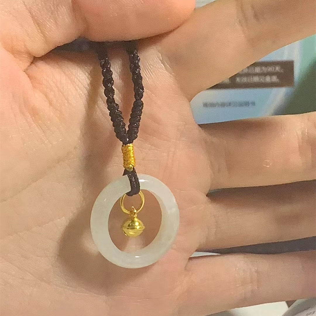 Jade Color Bell Necklace Fashion Safe Buckle Bell One Step Ring Atmospheric All-match Woven Clavicle Chain