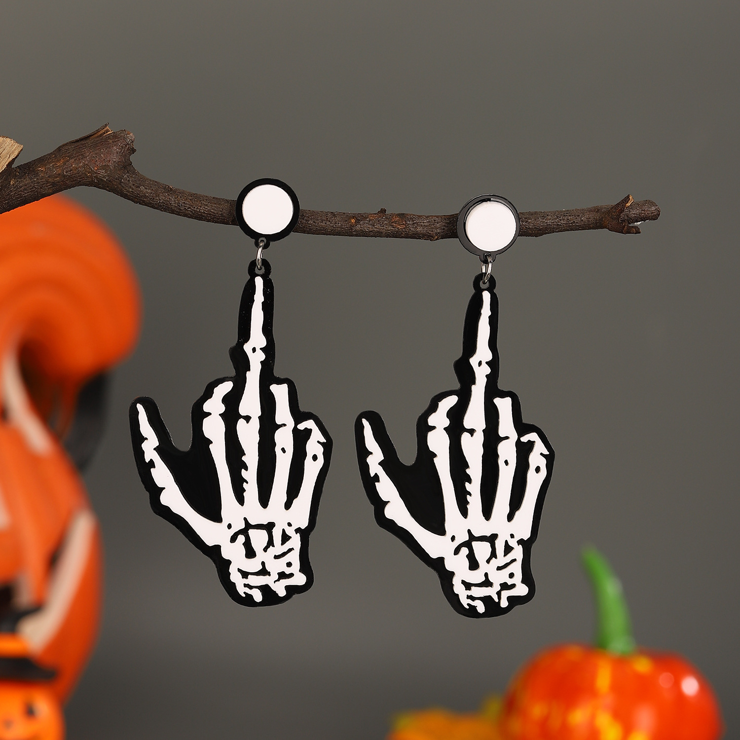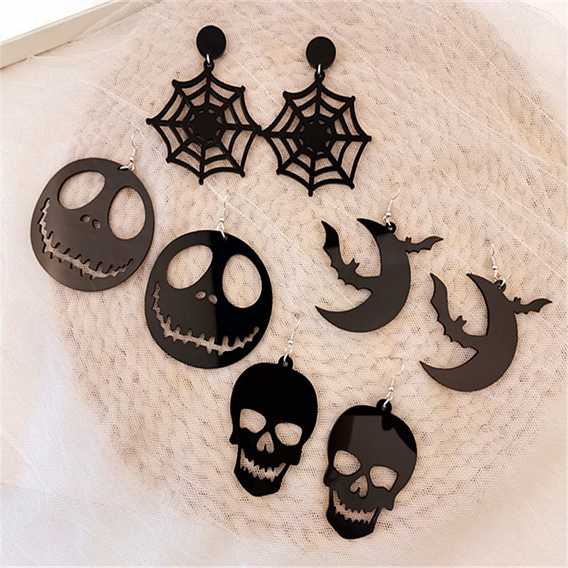 European and American acrylic Halloween horror black and white spider web bat Pumpkin Moon love skull exaggerated earrings