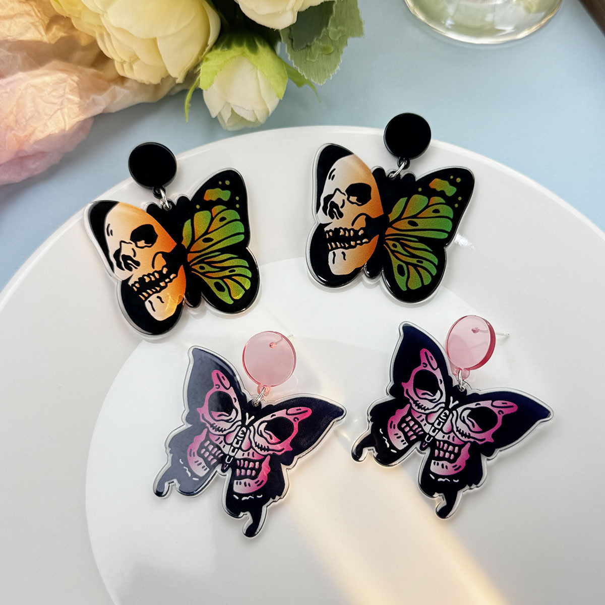 Silver Needle European and American Cross-Border Personalized Butterfly Acrylic Earrings Cartoon Funny Skeleton Horror Halloween Earrings for Women