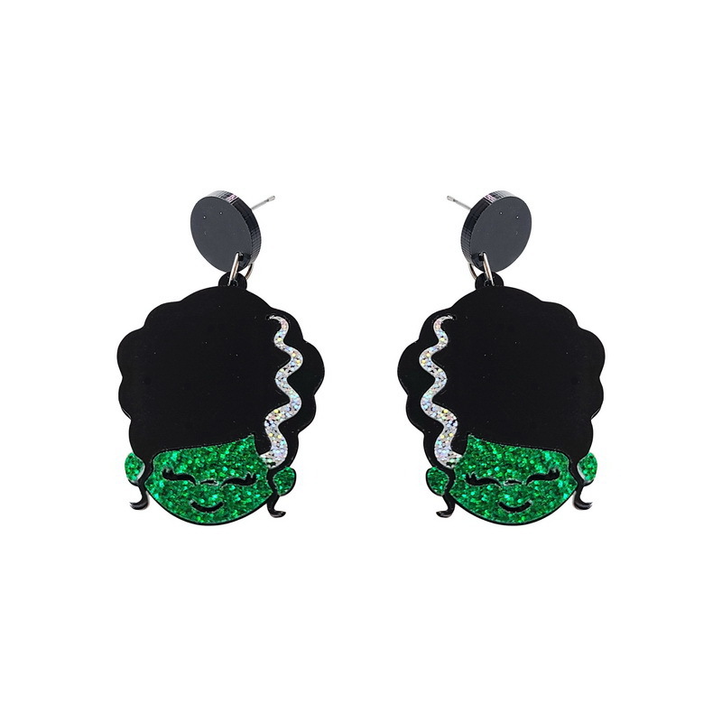 Halloween horror funny ghost demon green glitter girl earrings fun skull pumpkin ghost earrings female