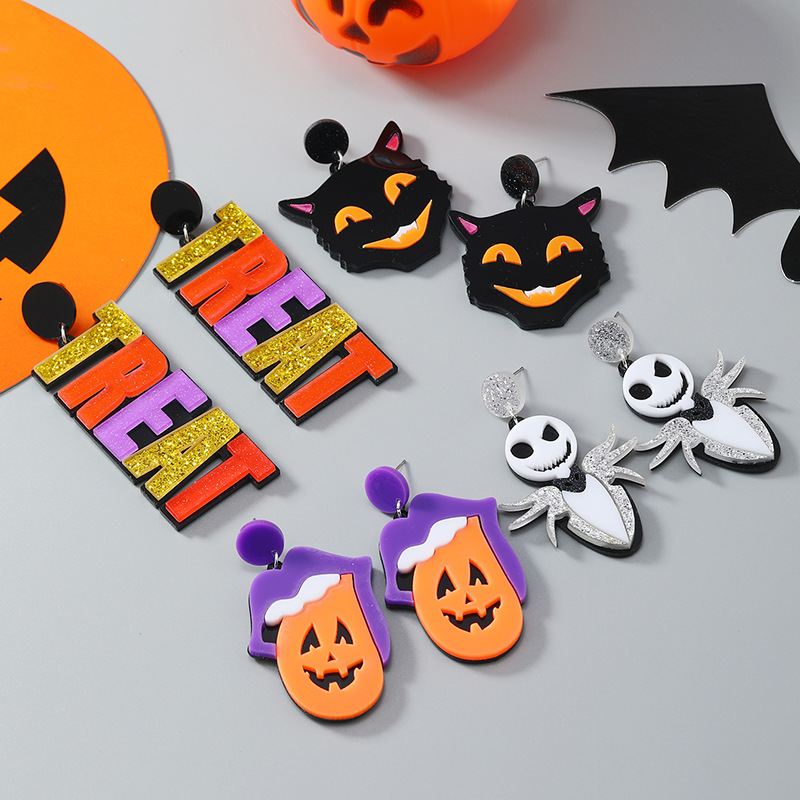 European and American exaggerated acrylic Halloween dark horror pumpkin candy bat basket earrings creative earrings