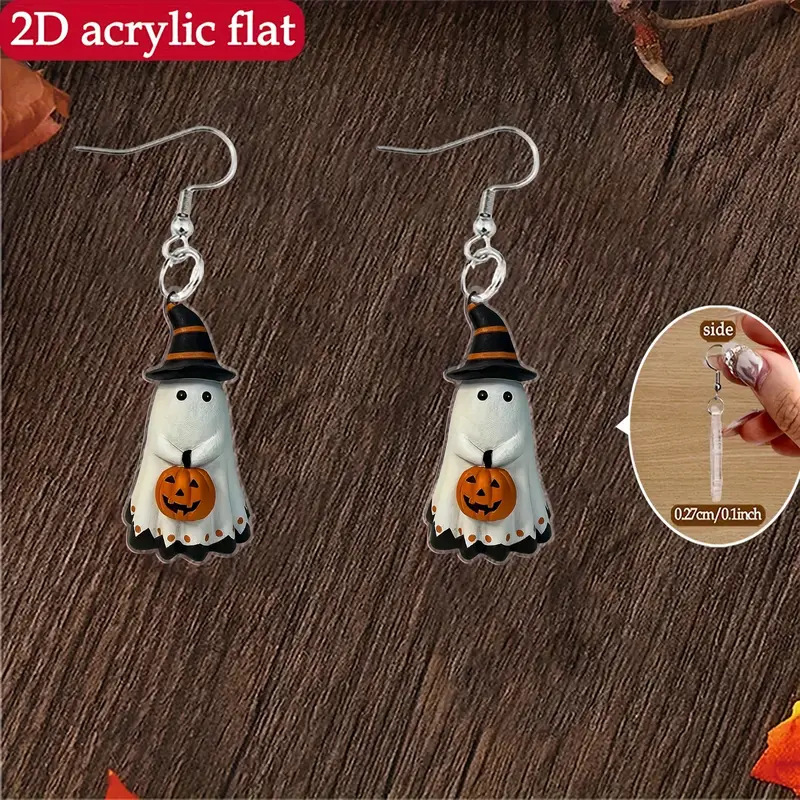 Cross-Border New Halloween Horror Ghost Milk Tea Style Acrylic Earrings Cartoon Cute Floral Ghost Earrings