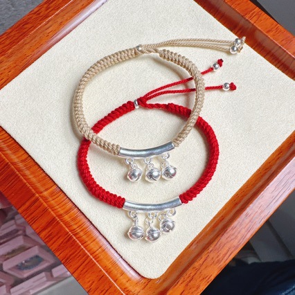 Pure Silver 999 small Bell elbow braided rope chain one step sterling silver ancient style new Chinese bracelet for girlfriend girlfriend