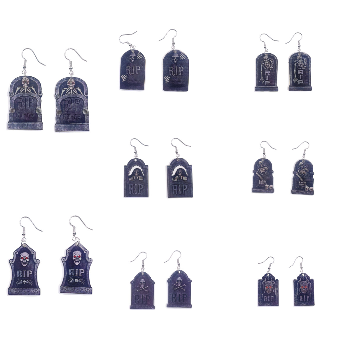 Cross-Border Halloween Hot Sale Horror Skull Drop-Shaped Acrylic Flat Earrings