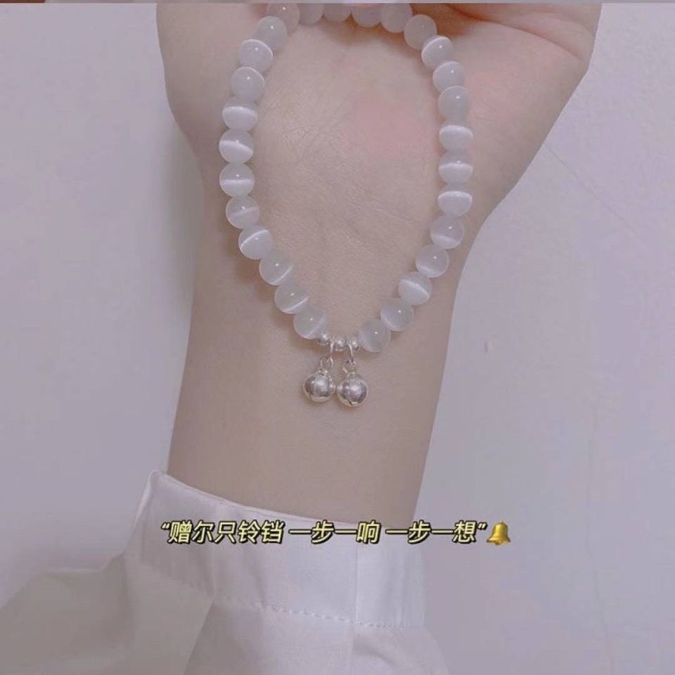 One Step at a Time, One Sound at a Time, White Cat's Eye Bell Bracelet, Ins Sweet and Simple Bracelet, Student Gift, Handmade Beads