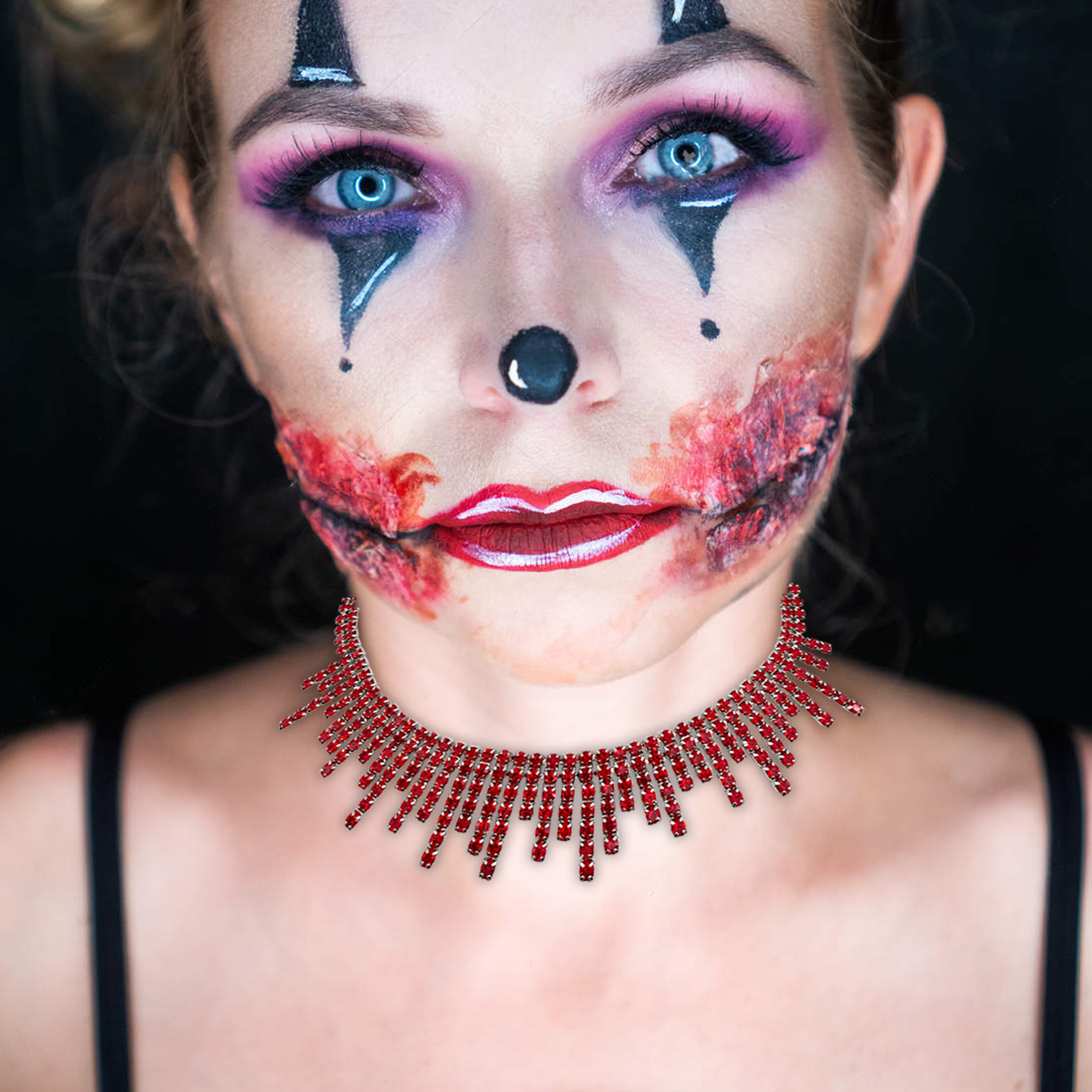 Cross Border Horror Accessories Necklace Red Imitation Effect Female Rhinestone Shiny Party Night Shop Halloween