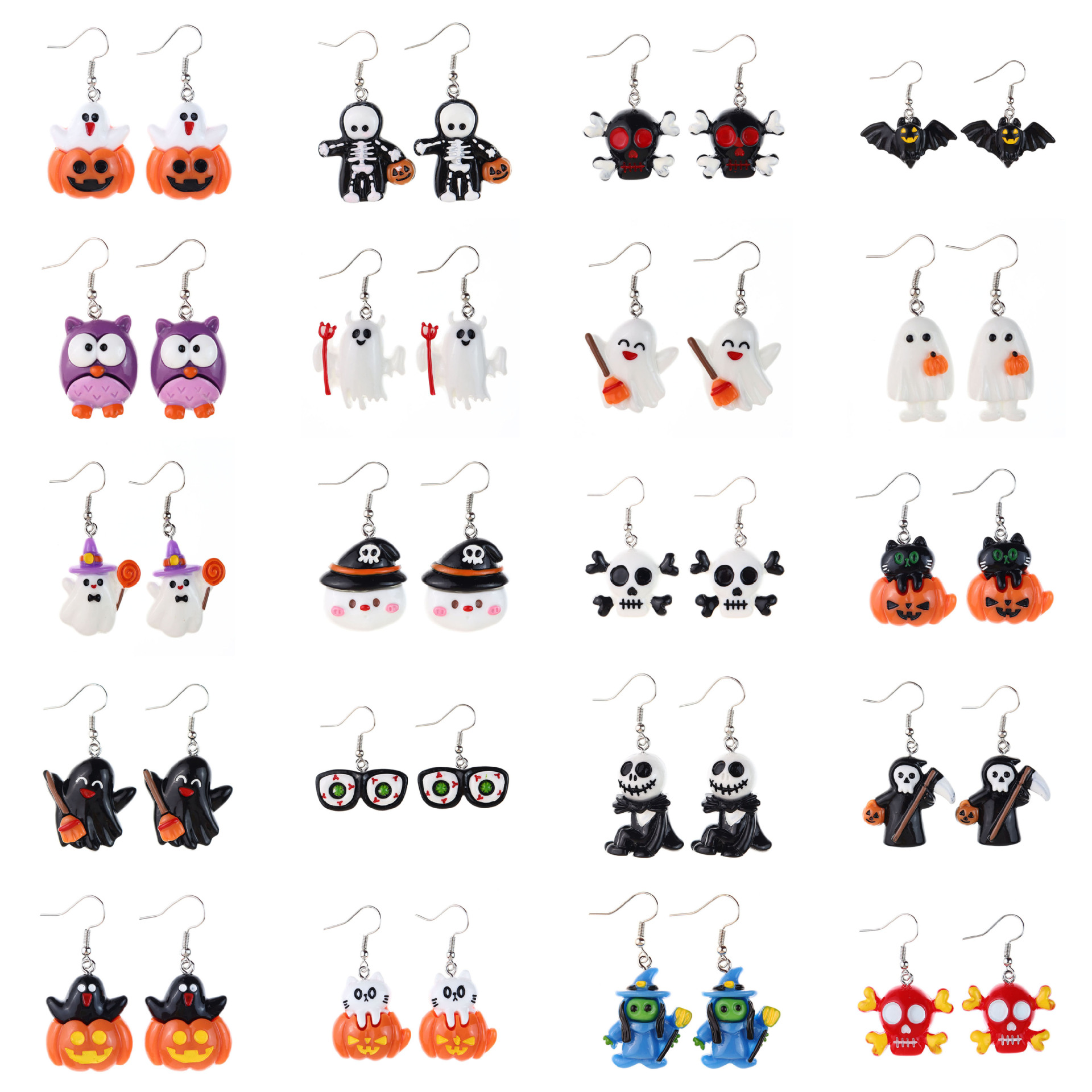 European and American Halloween Series Earrings Horror Funny Personality Skull Spider Ghost Pumpkin Resin Earrings Earrings