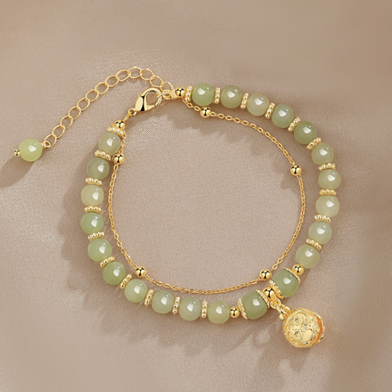 Shake Tone Same Style Hetian Jade Double Layer Wind Bell Bracelet Female Niche Design Retro One Step Ring Palace Bell Bracelet Jewelry