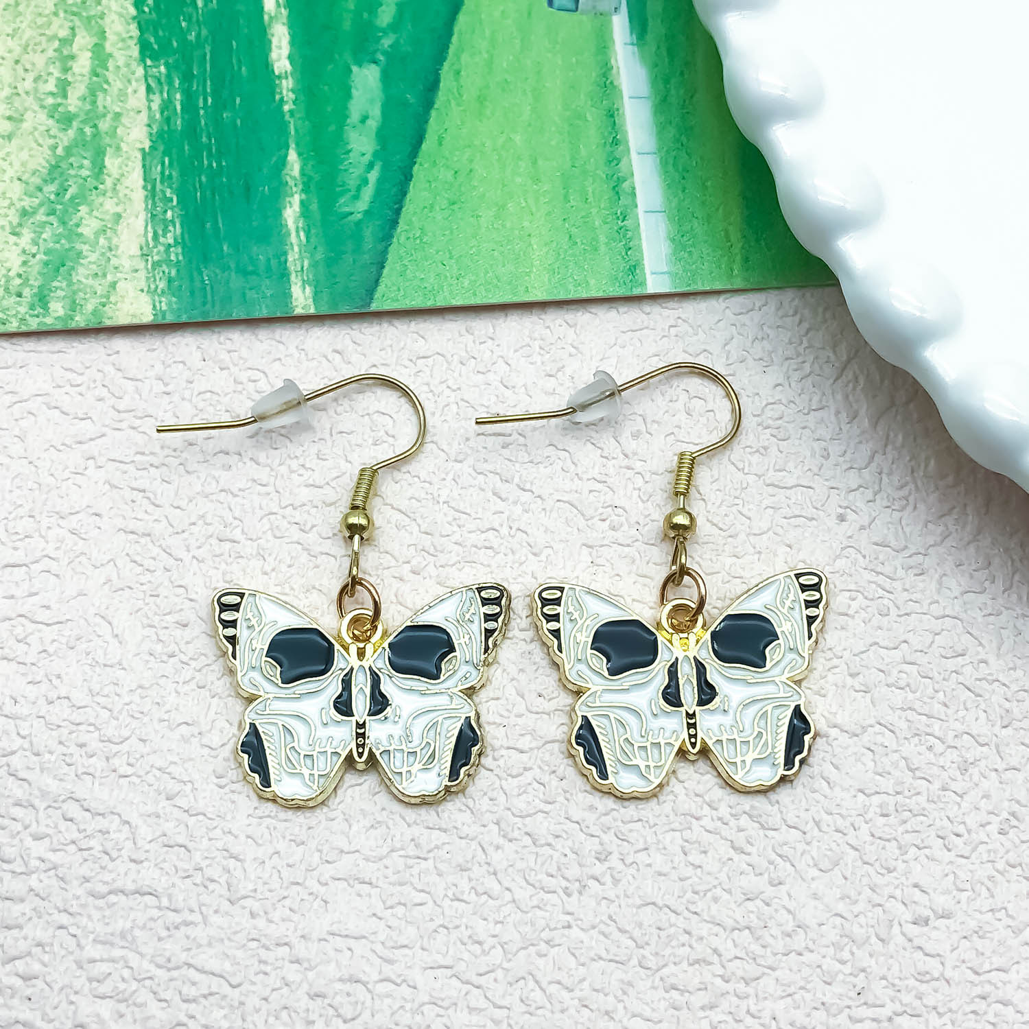 Dark Style Halloween Horror Skull Butterfly Earrings Alloy Dripping Oil Pendant Ear Hook Holiday Party Jewelry Cross-border