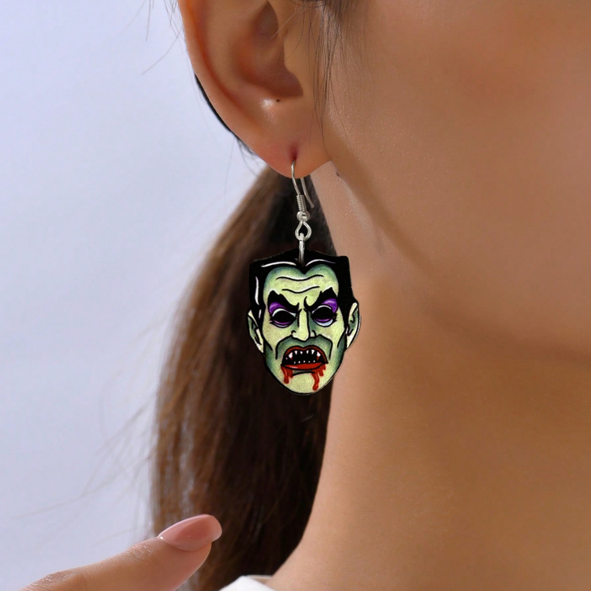 European and American Cross-border Source Acrylic Halloween Horror Earrings Green Men's Head Earrings Gothic Women's Earrings