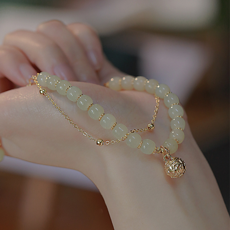 Natural Hetian Jade Wind Bell Bracelet Female Senior Feeling One Step One Ring Hetian Jade Transfer Bead Palace Bell Bracelet Wholesale