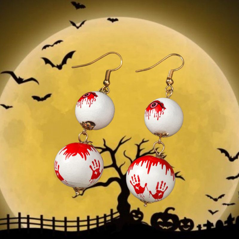 New cross-border Halloween dark horror exaggerated red eyes Palm wooden beads pendant earrings female jewelry wholesale