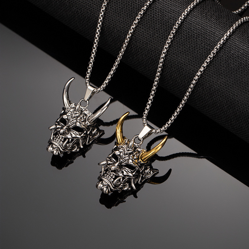 Cross-border Golden Horn Silver Horn Prajna Necklace Men's Ghost Mask Titanium Steel Chain Demon Horror Domineering Woolen Chain Necklace