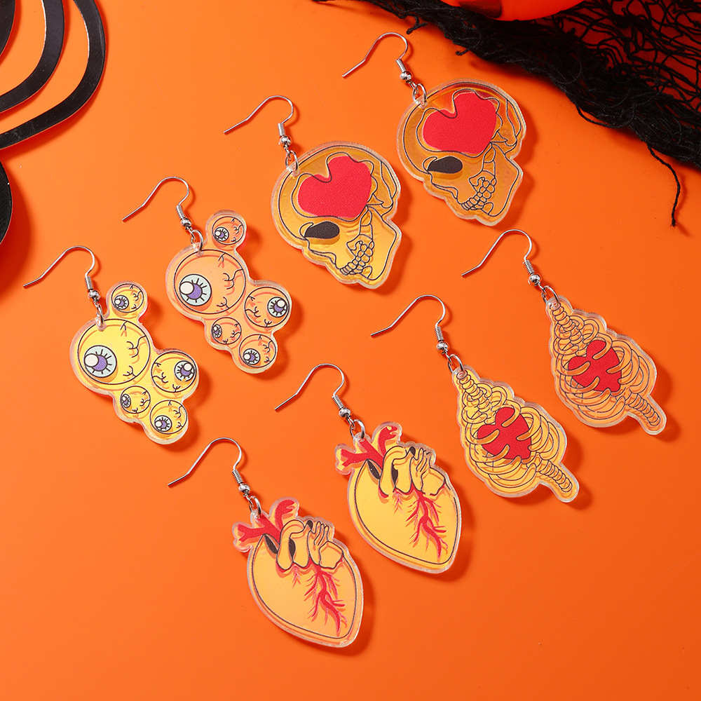 European and American fashion exaggerated Halloween horror skull skull eyeball heart viscera transparent acrylic earrings earrings