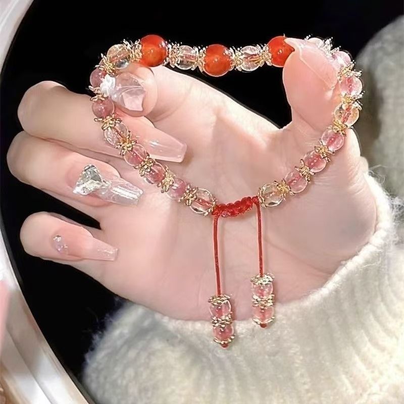 Raspberry Crystal Cute Bracelet Women's Peach Blossom Simple Couple Love Sweet Jewelry Bell Ring Feather Crystal Bracelet