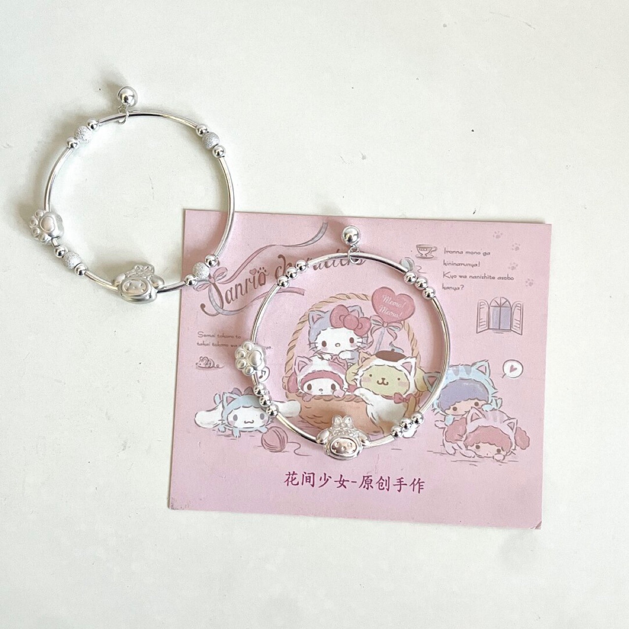 925 Sterling Silver Sanrio Good Luck Kitty Transfer Bead Bracelet with Small Bells Ringing Step by Step