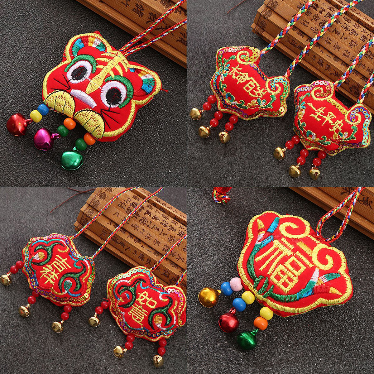Embroidered Tiger Head Lucky Bag Tiger Head Long Life Lock Children's Neck Sachet Collar Dragon Boat Festival Baby Ethnic Style Necklace