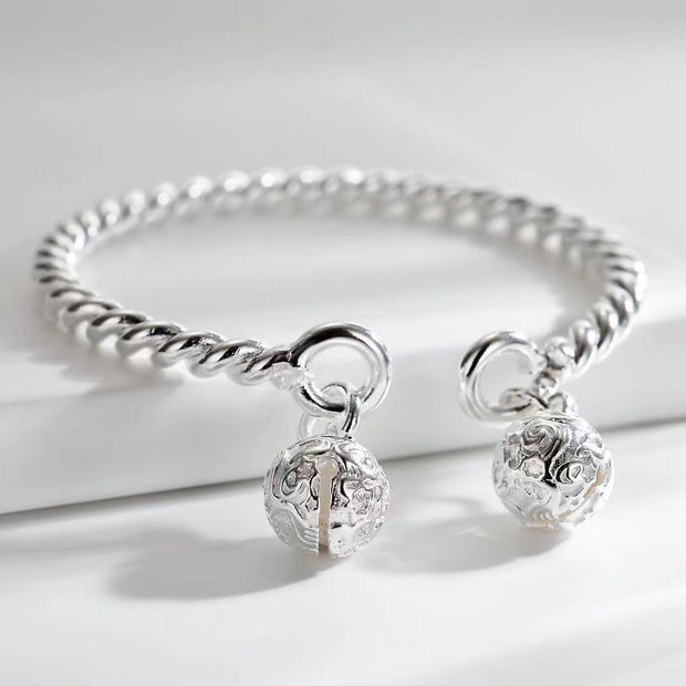 Jiang Ming Twist Line Palace Bell Silver Plated Bracelet Women's Step by Step One Think Double Bell Antique Style Bracelet Tanabata Live Explosions