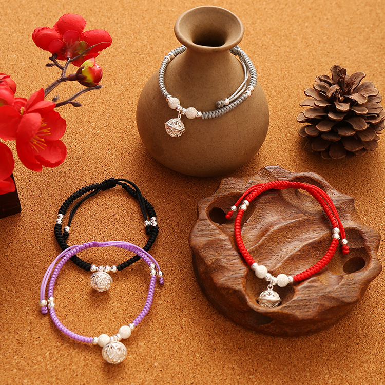 Korean style one-step ring court Bell couple four-color woven red rope bracelet diy niche design hand rope