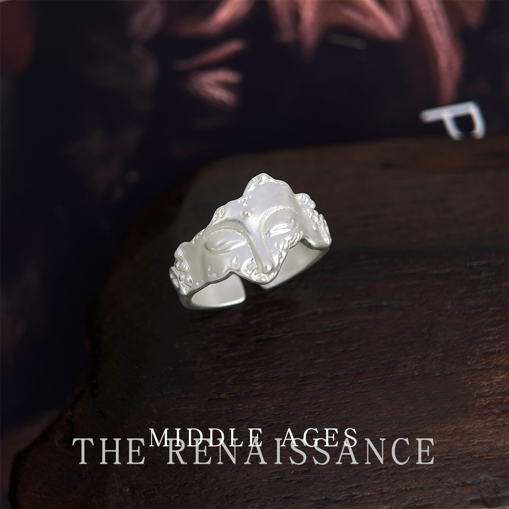 Vintage Niche Broken Face Buddha Statue Ring Niche Design Artistic Index Finger Ring Personalized Versatile Hand Jewelry