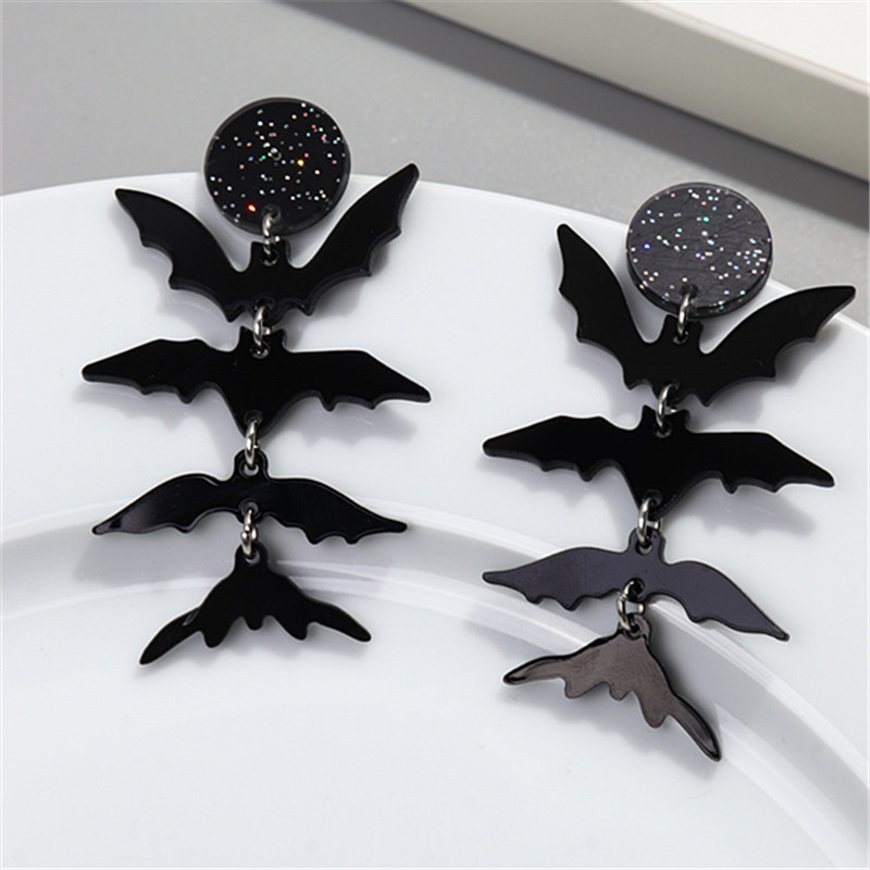 European and American cross-border dark wind exaggerated Halloween horror earrings acrylic special-shaped bat earrings