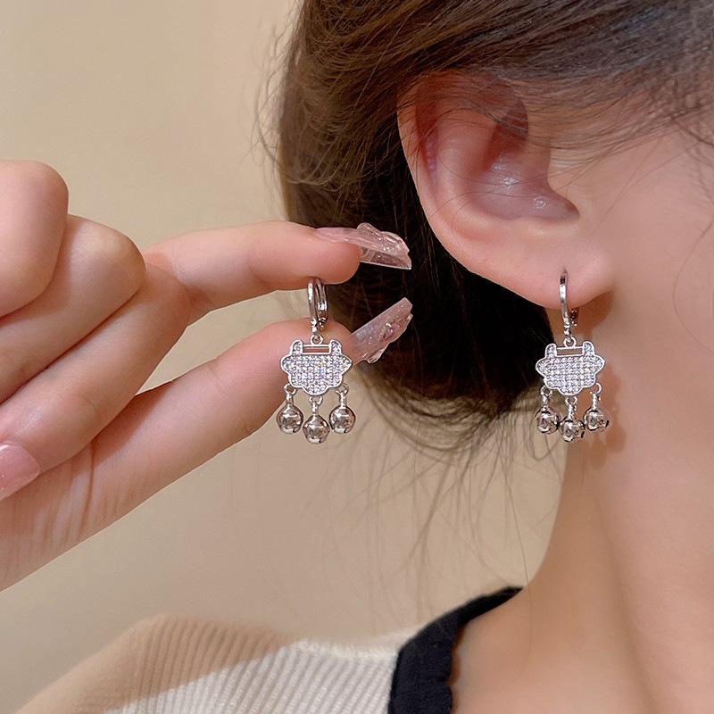 One Step Ring Safe Lock Earrings Advanced Sense Light Luxury Elegant Elegant Earrings Niche Distinctive Earrings Autumn and Winter Bell Earrings