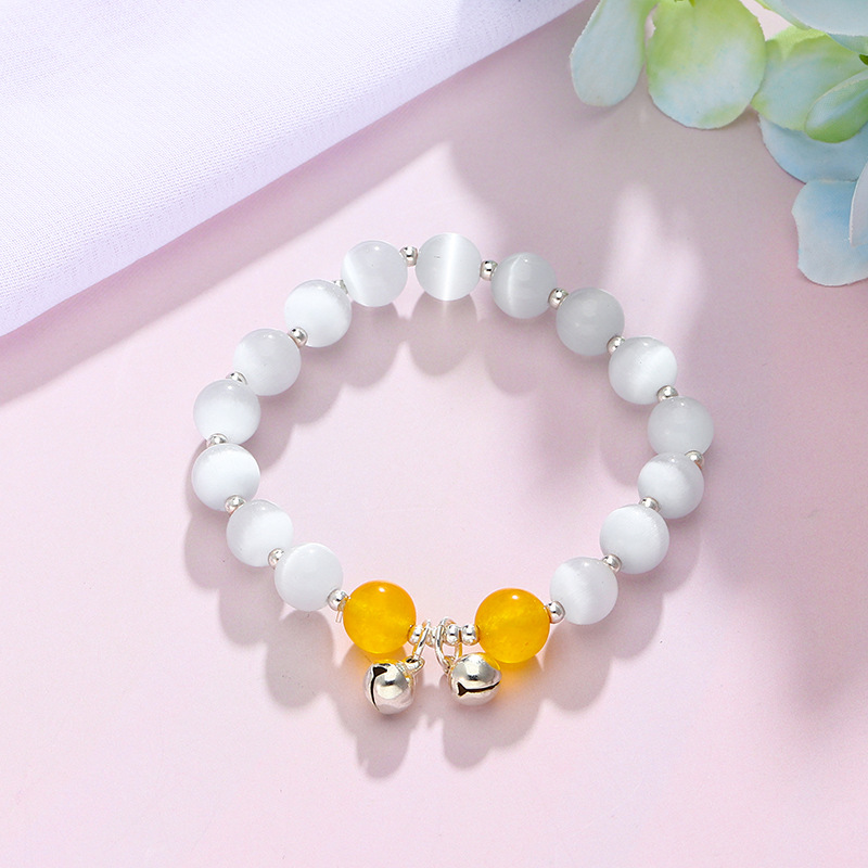 [One Step] Badu Crystal Bracelet Women's New Cat's Eye Bracelet Strawberry Crystal Yellow Chalcedony Bell Bracelet