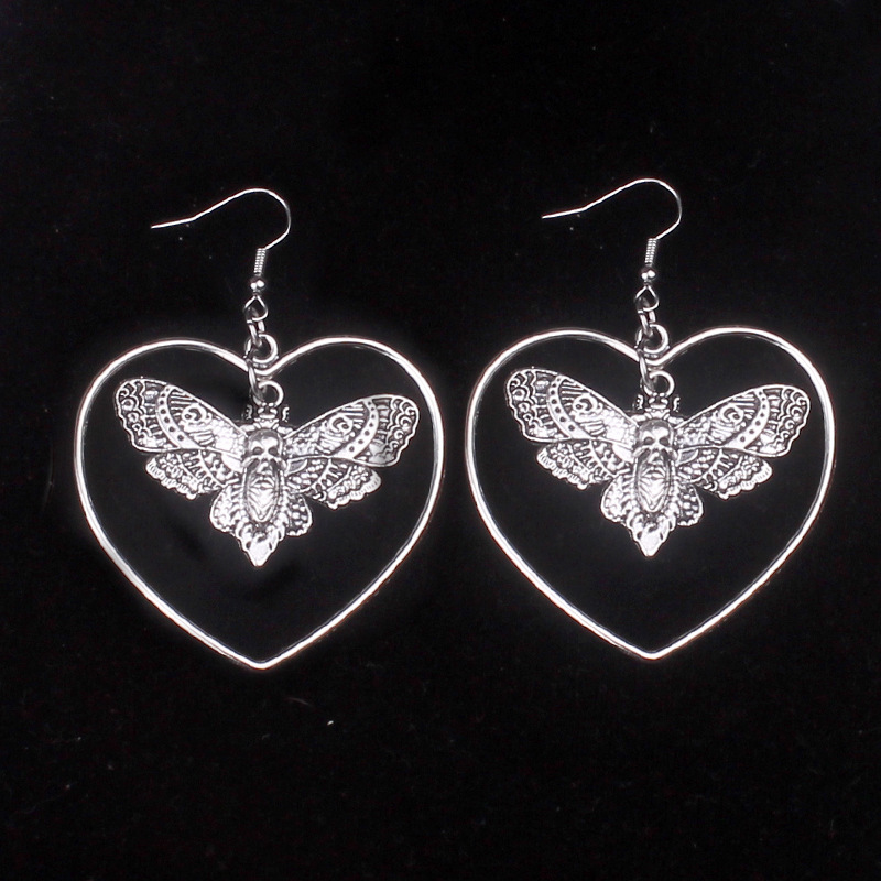 Fashion Retro Thriller Halloween Ghost Festival Skull Moth Earrings Ear Hook Fashion Hip Hop Horror Exaggerated Earrings