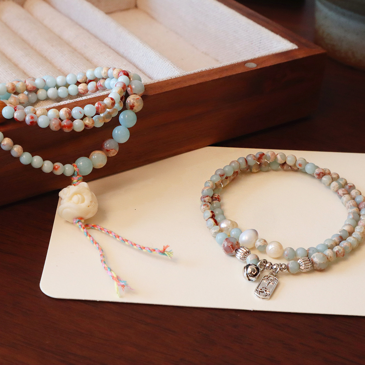 Natural Bodhi Shoushan Stone Colorful Beaded Bracelet Niche Retro Light Luxury High-end Sense Double-layer Stacked Wear Bracelet