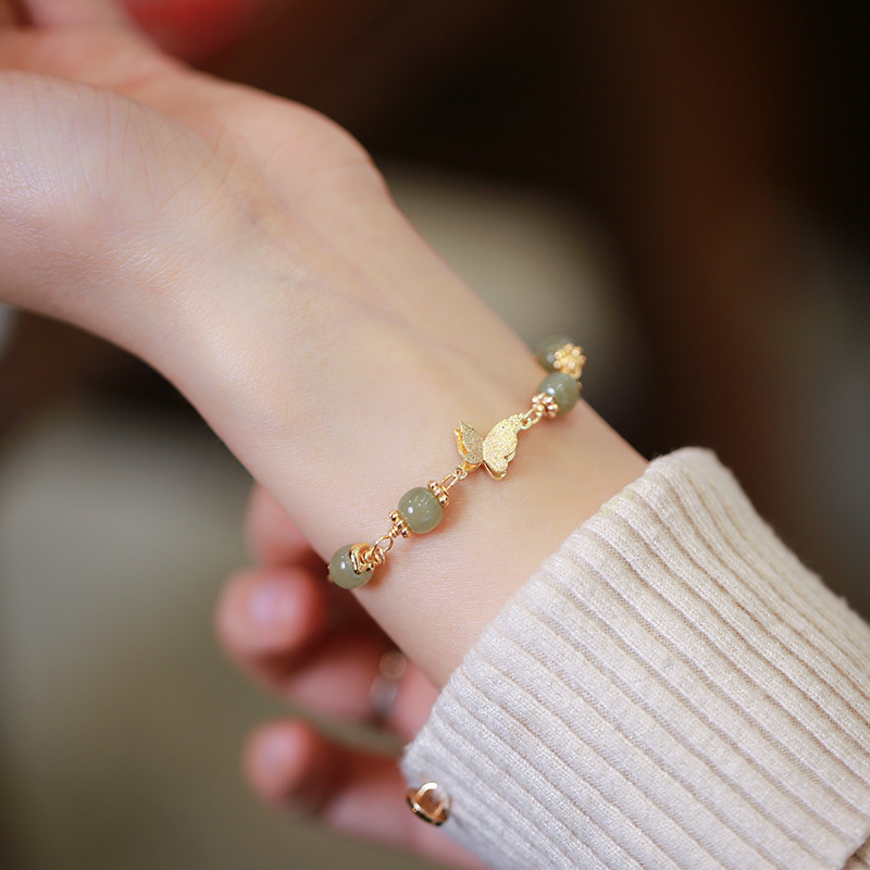 Natural Hetian Jade Butterfly Bracelet Beaded Jewelry for Women, Light Luxury, High-End Feel, Buddhist Beads, Hand Ornaments, Hot-Selling Wholesale