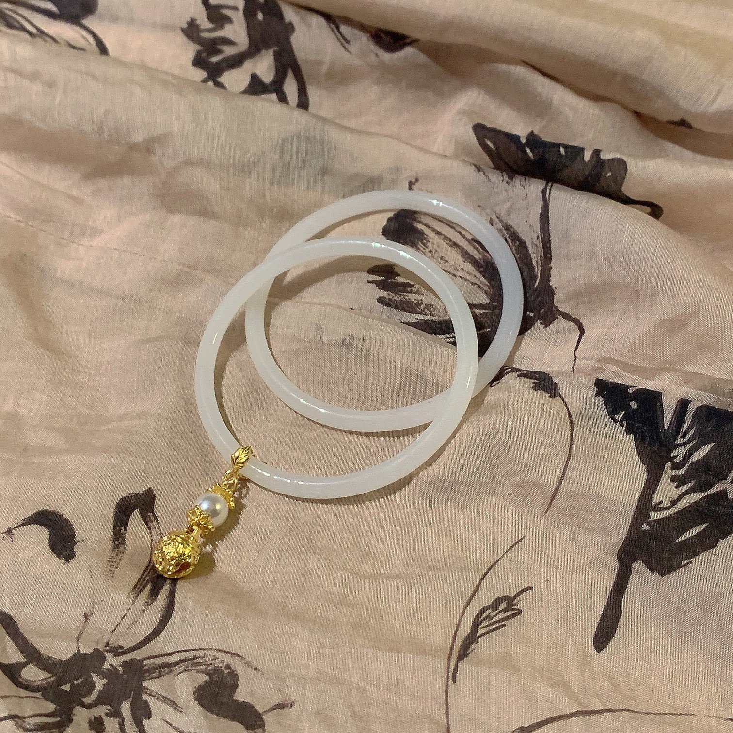 New Sansheng Lucky Bracelet Double Ginkgo Leaf Imitation Hetian Jade Bell Bracelet Internet Celebrity Shake Tone Same Style Girlfriend Ceremony