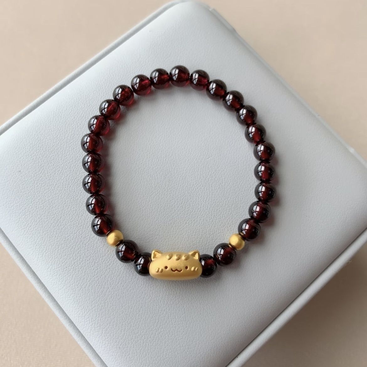 Popular Baguette Cat High-Value Bracelet Imitation Pomegranate Red Girlfriend Bestie Gift Sweet and Cute Bracelet for Girls on Chinese Valentine's Day