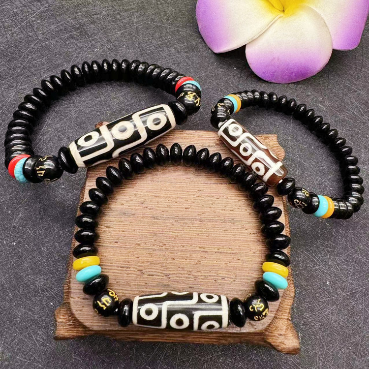 Xizang style Nine-eye beads bracelet three-eye beads bracelet ethnic style women's six-word mantra Buddha beads bracelet