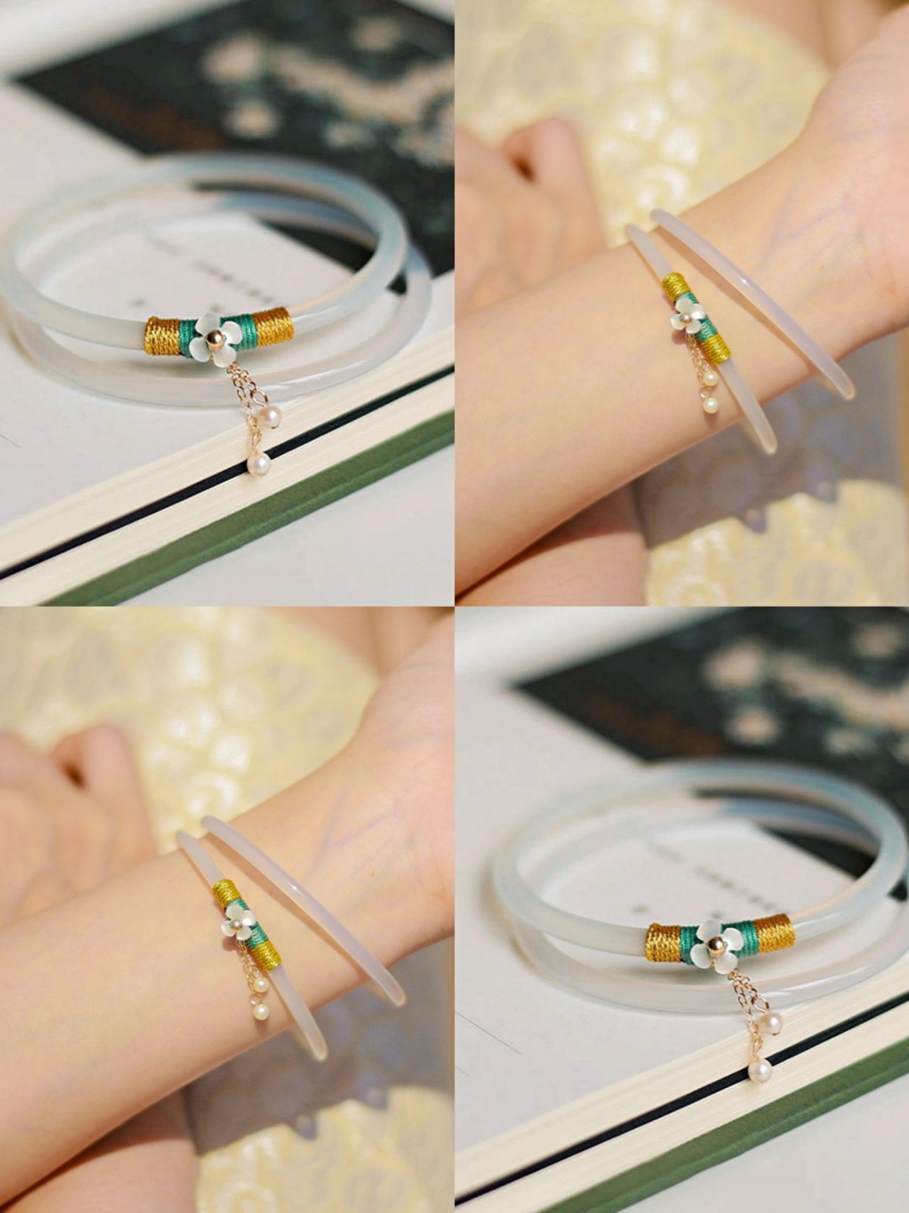 Step by Step Glass Imitation Jade Jingle Bracelet Winding Thread Winding Flower Antique Accessories Forbidden Little Red Riding Book Girlfriend Bracelet