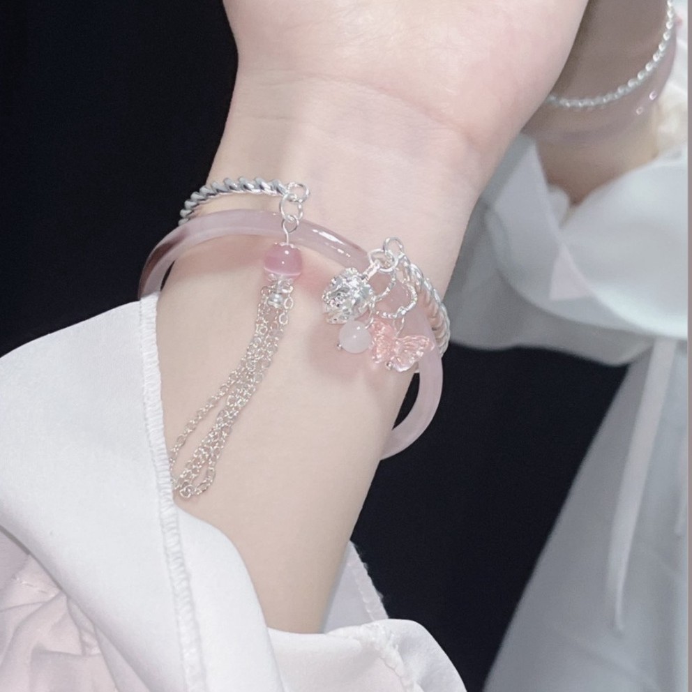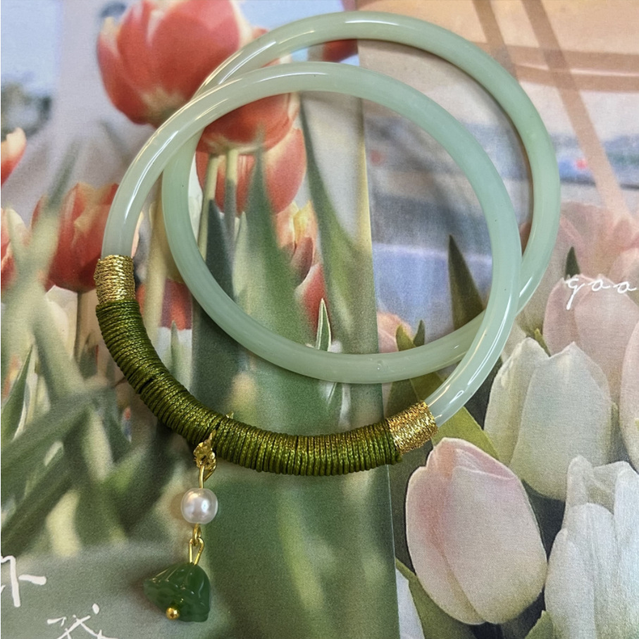 One-Step-At-A-Time Glass Imitation Jade Jingle Bracelet with Dried Rose Ancient Style Accessory, the Same Bracelet Worn by Little Red Book Besties