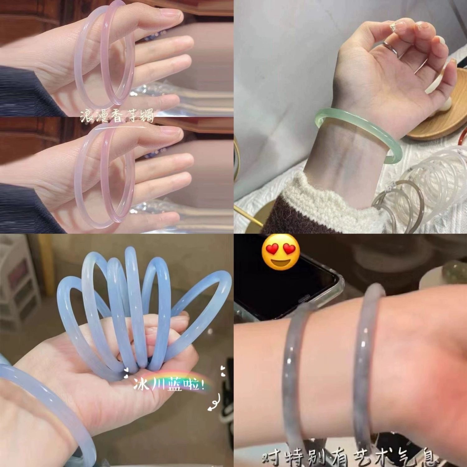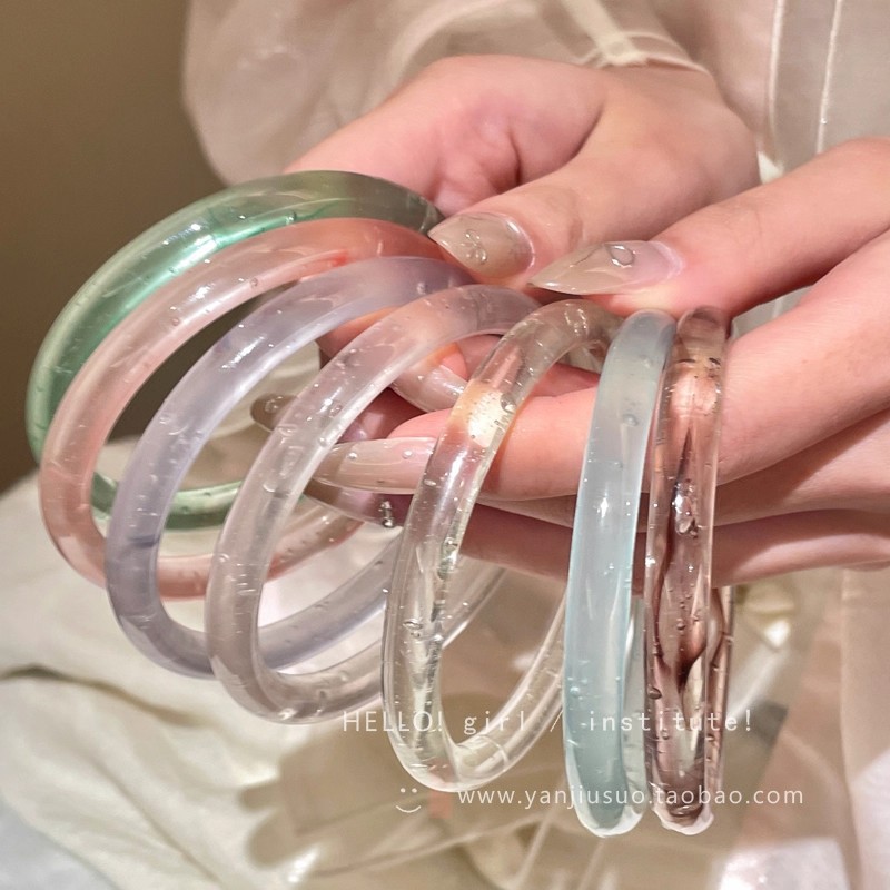 Xiaohongshu's Same Style Natural Ice Transparent Bracelet, One Step at a Time, Smart and Pleasant, Glazed Imitation Jade Round Bar Texture, Versatile