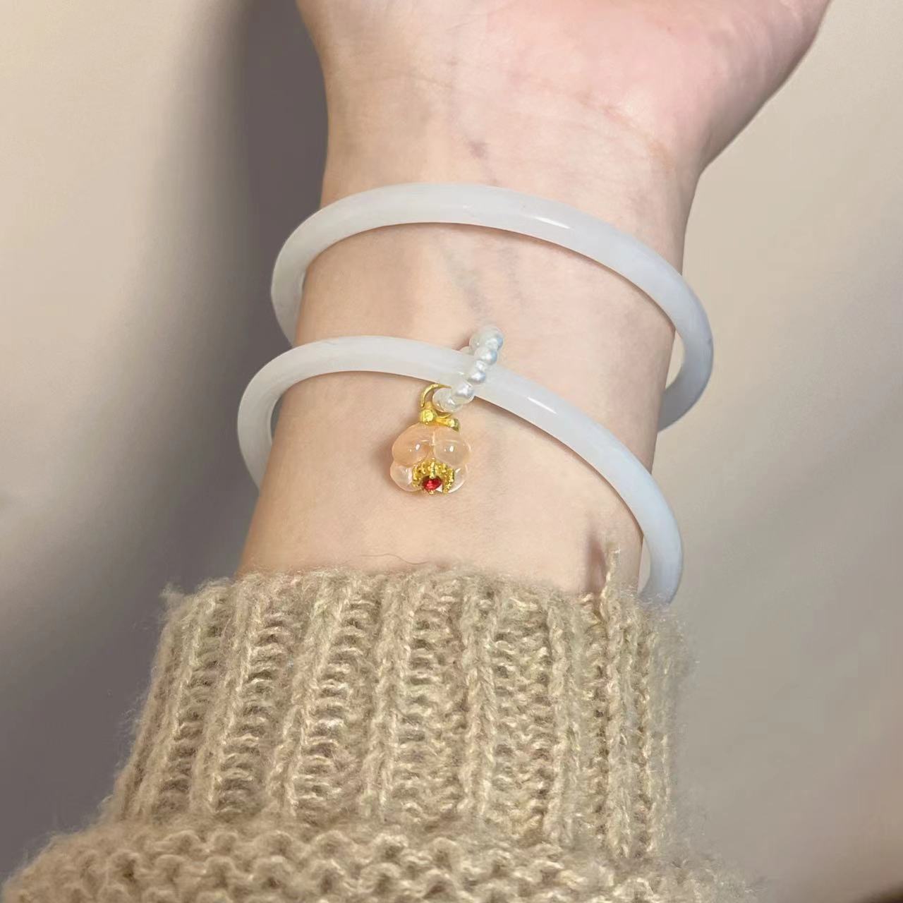 Glass Imitation Jade Jingle Bracelet, Thick Round Bar Bracelet, One Step at a Time, Bestie Female Bracelet, Xiaohongshu Ancient Style Jingle Same Style