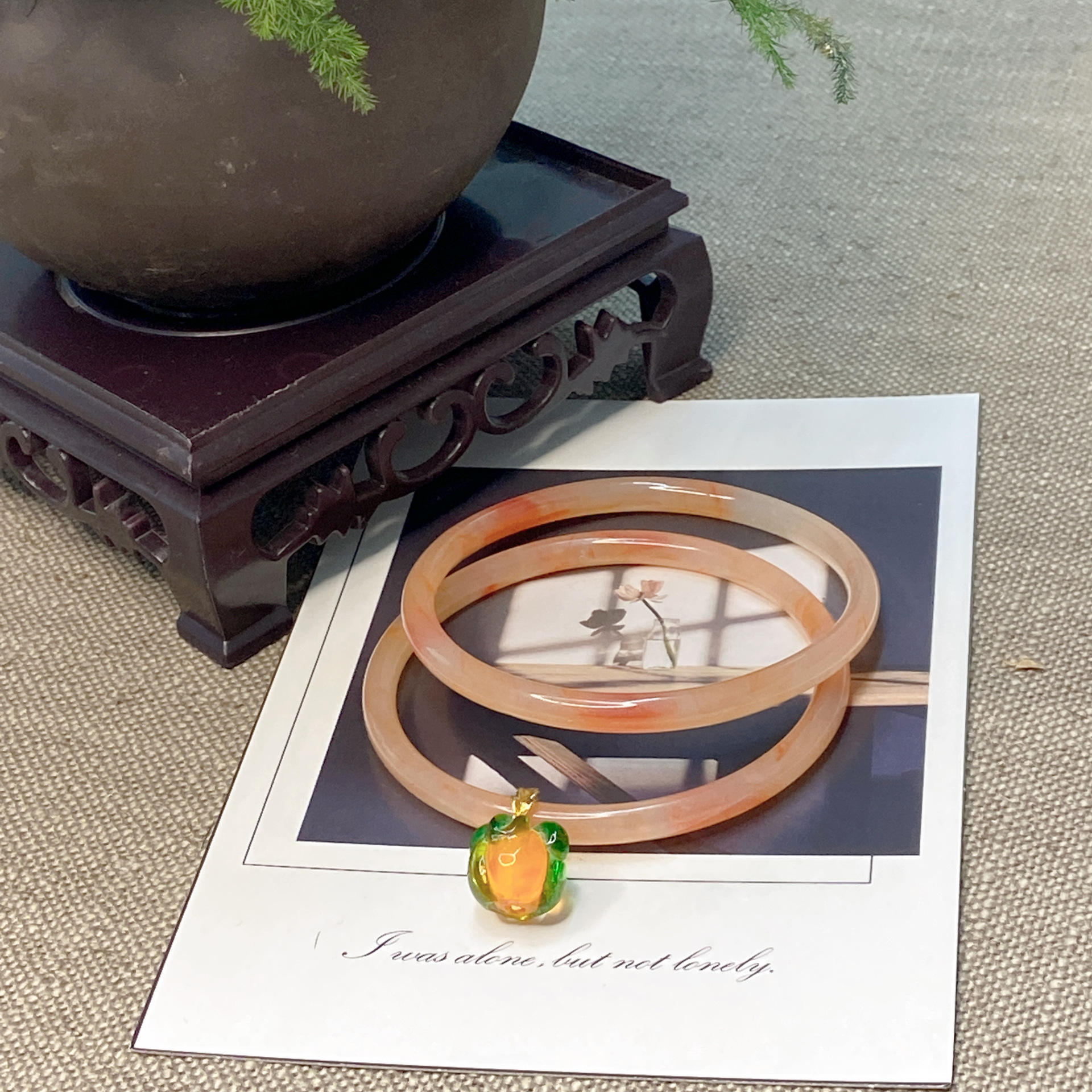 Sakura Pink Ice Translucent Glass Bracelet, a Pair of Bracelets, One Step at a Time, Girl's Jingle Bracelet, Thin Round Jewelry
