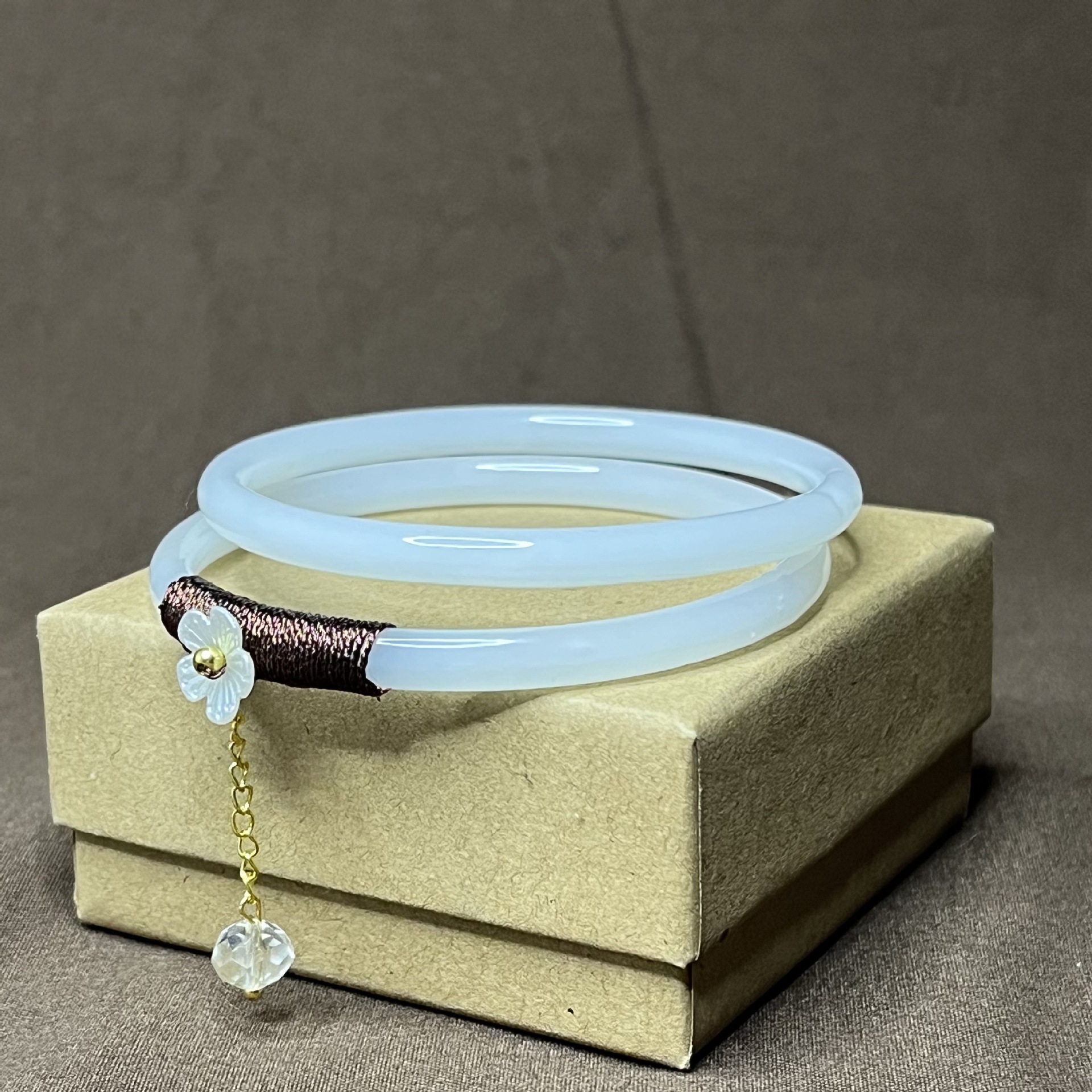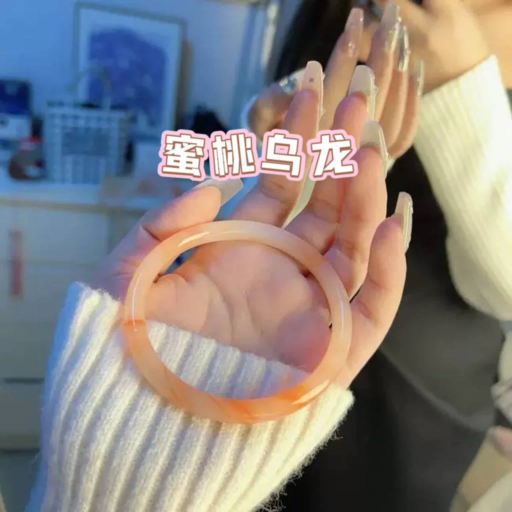 One-Step-At-A-Time Glass Imitation Jade Round Bar Bracelet, Same Style as on Xiaohongshu, Natural Spring Ice Transparent Bracelet for Women, High Ice