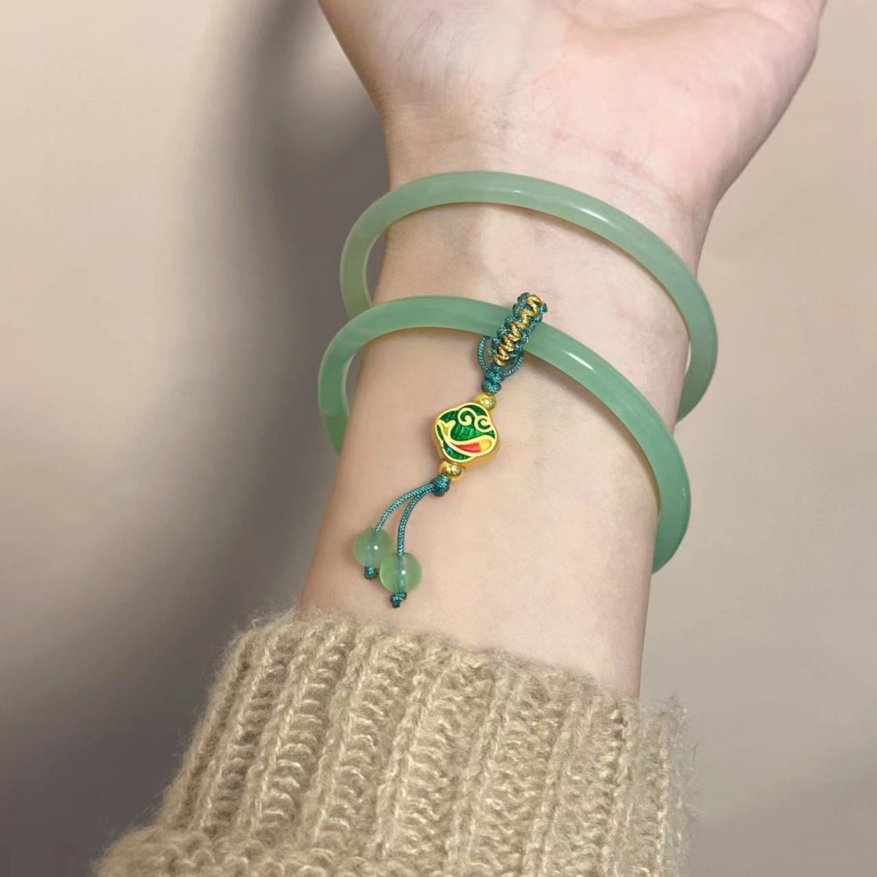 One-Step-At-A-Time Glass Imitation Jade Jingle Bracelet Peach Blossom Stuffed Ancient Style Accessories Limited Edition Xiaohongshu Best Friend Matching Bracelet for Women