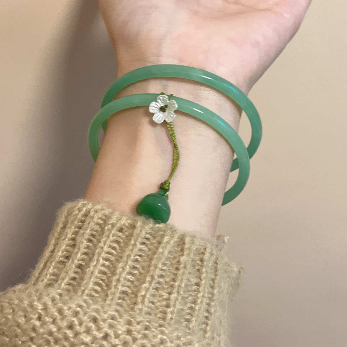 One-Step-At-A-Time Glass Imitation Jade Jingle Bracelet with Dried Rose Ancient Style Accessory, the Same Bracelet Worn by Little Red Book Besties