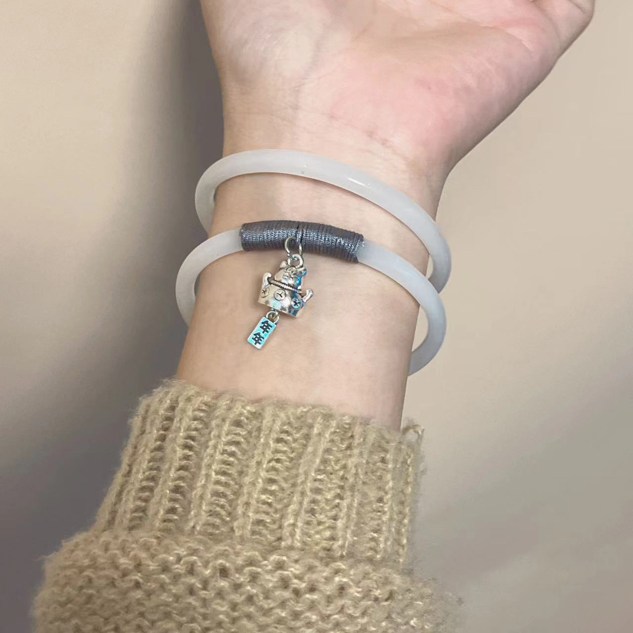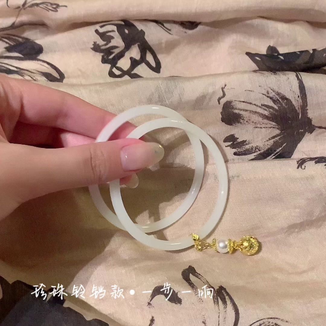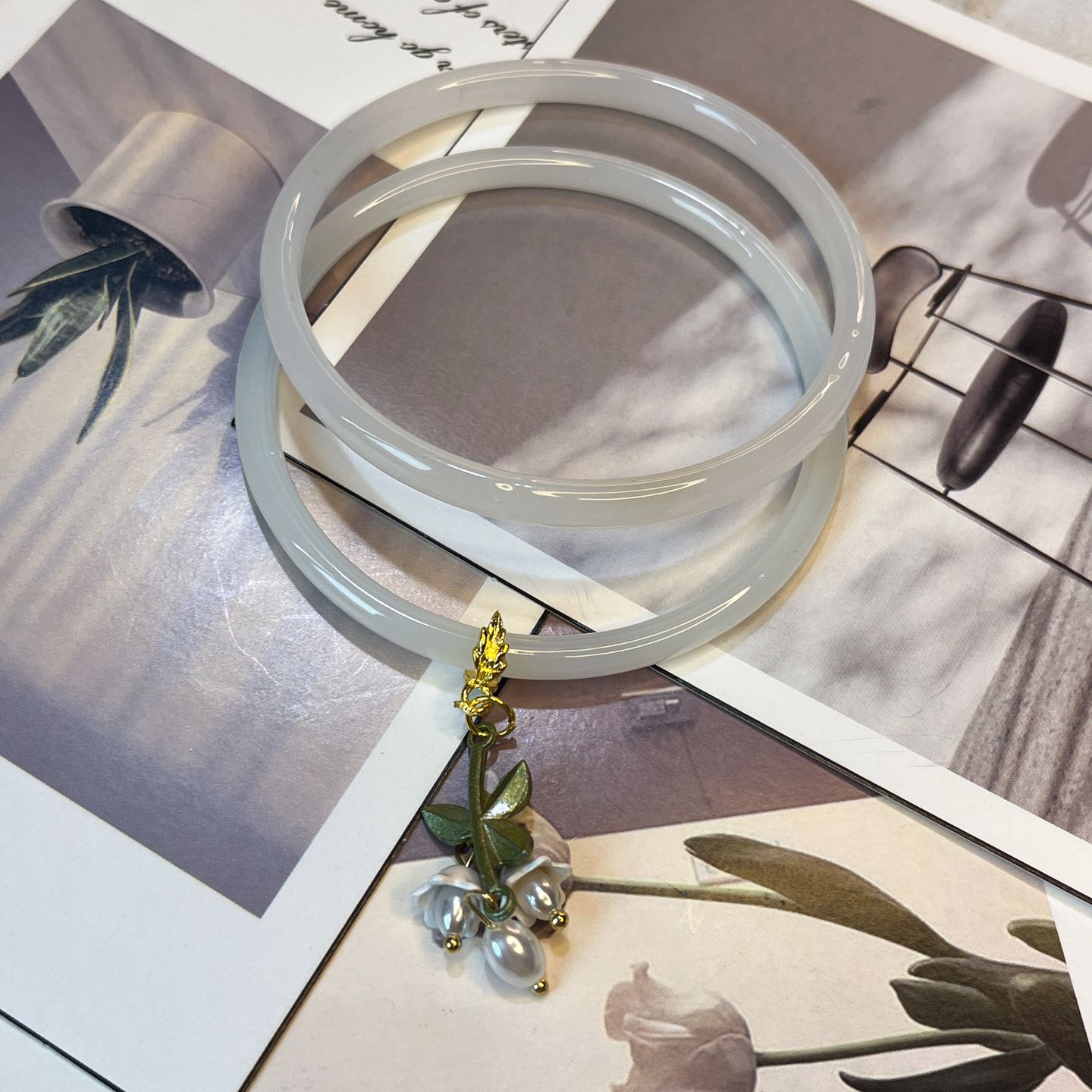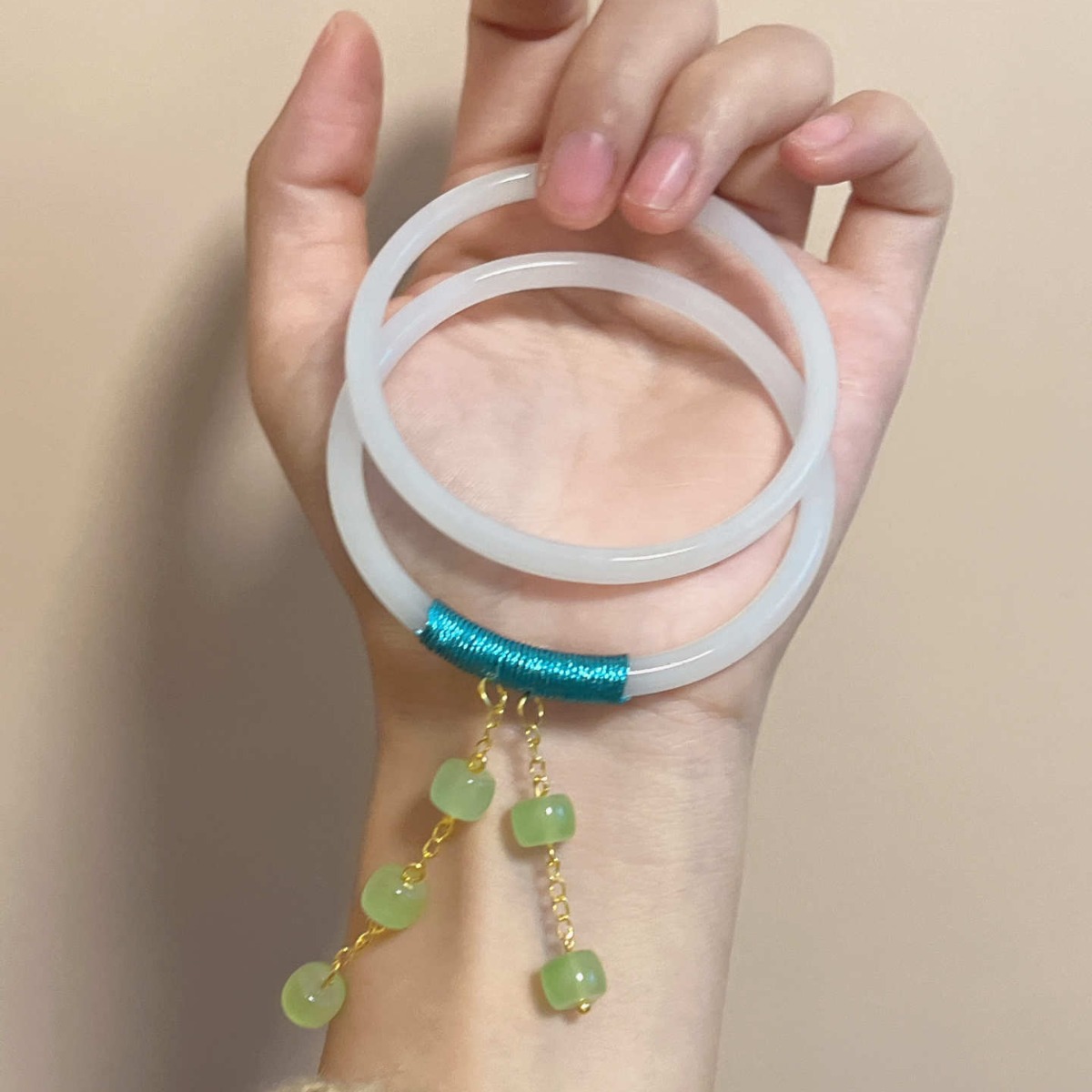 Sanji White Tea Poetry Collection One Step Imitation Chalcedony Jingle Bracelet Temperament Gentle Super Fairy Niche Bracelet Glass