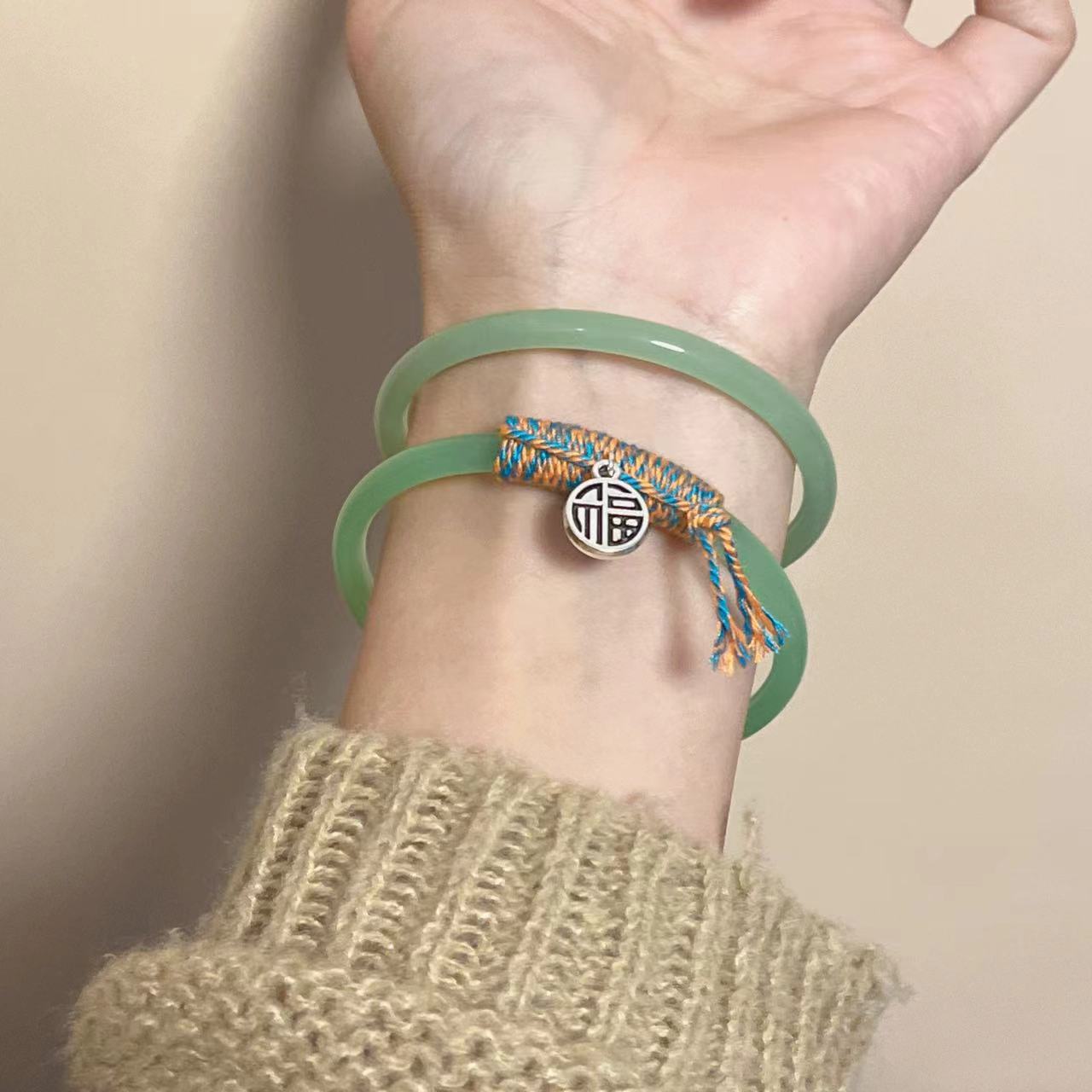 Tiktok Hot-Selling Bracelet Collection: Imitation Jade One-Step Retro New Chinese Style Ice Transparent Non-Fading Tianshan Jade Bracelet