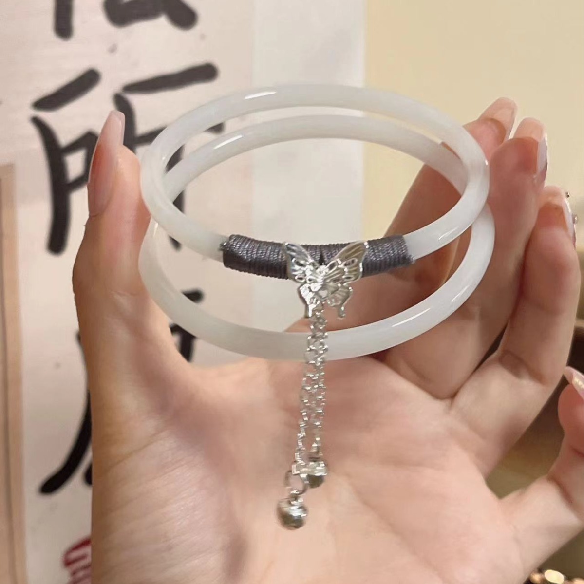 One Step at a Time Imitation Chalcedony Jingle Bracelet, Gentle and Super Fairy Niche Bracelet, Girl's Glass Butterfly Thin Strip Bracelet