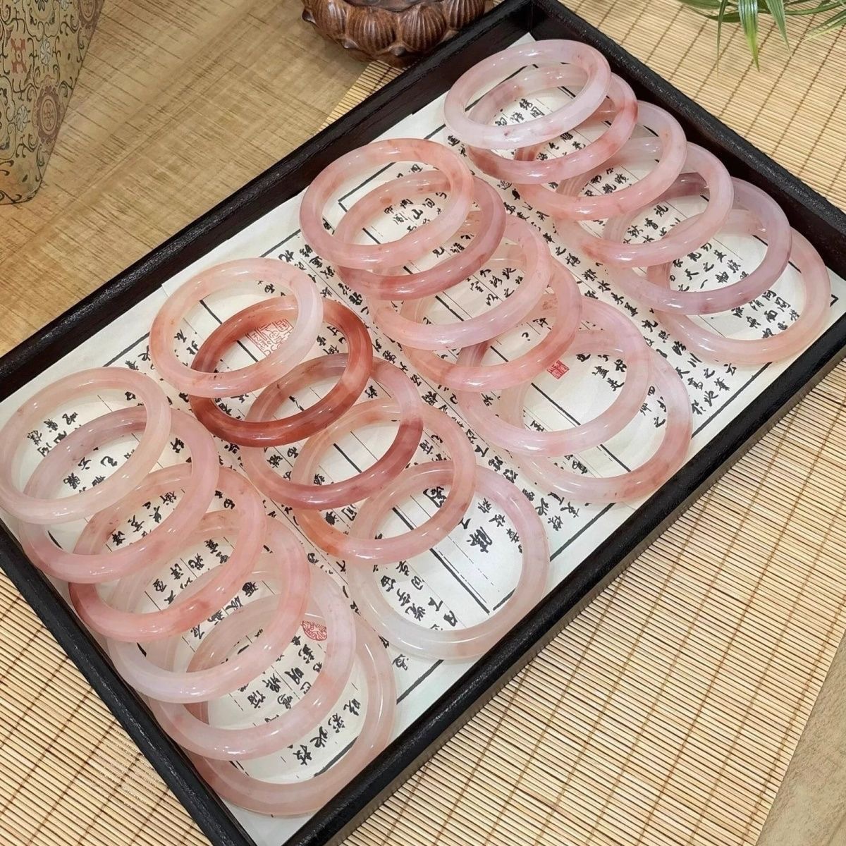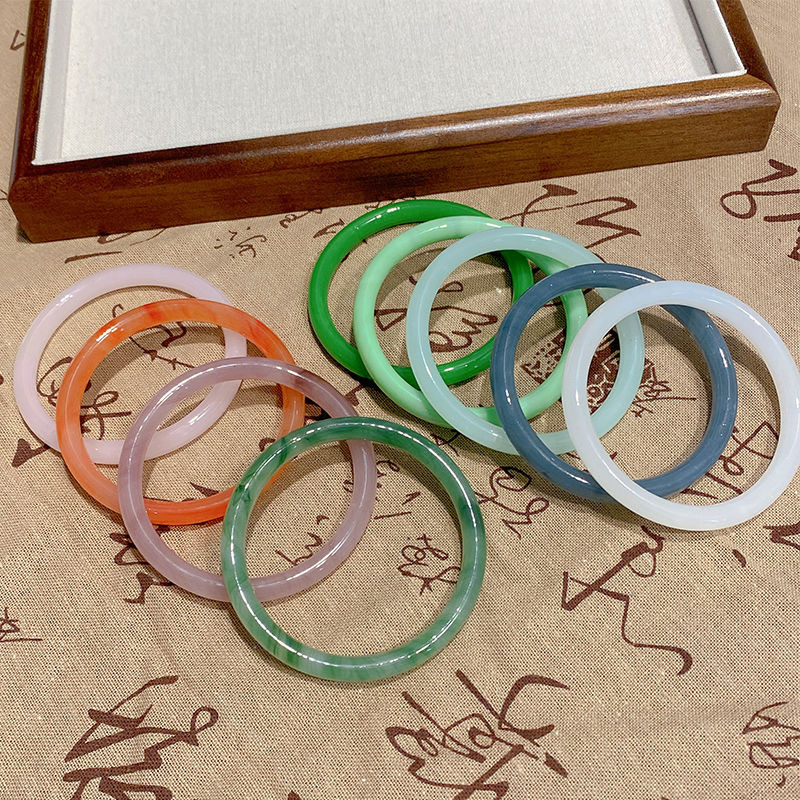 Step by Step Glass Imitation Jade Round Bar Bracelet Xiaohongshu Same Style Natural Shiranha Ice Transparent Bracelet for Women Gao Bing