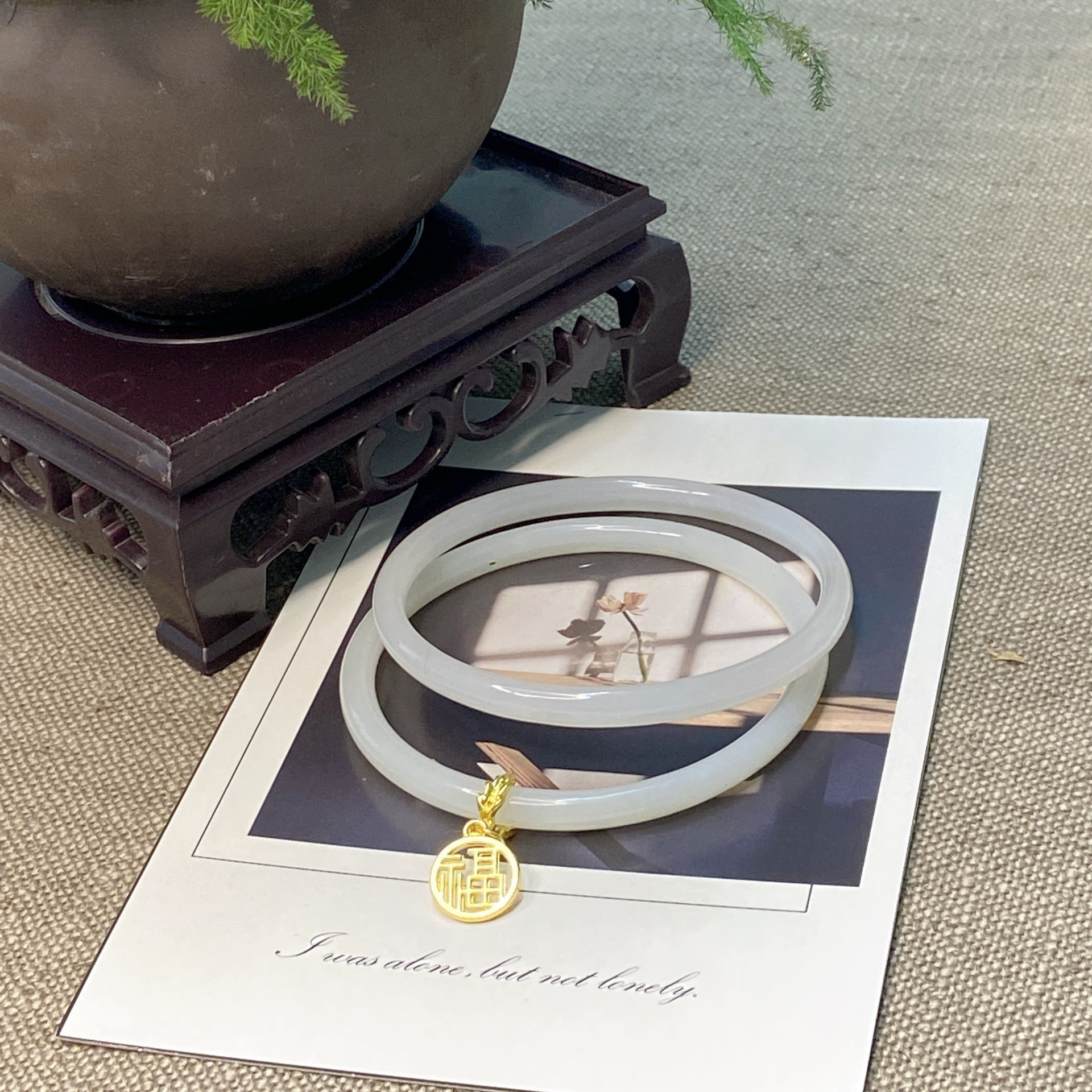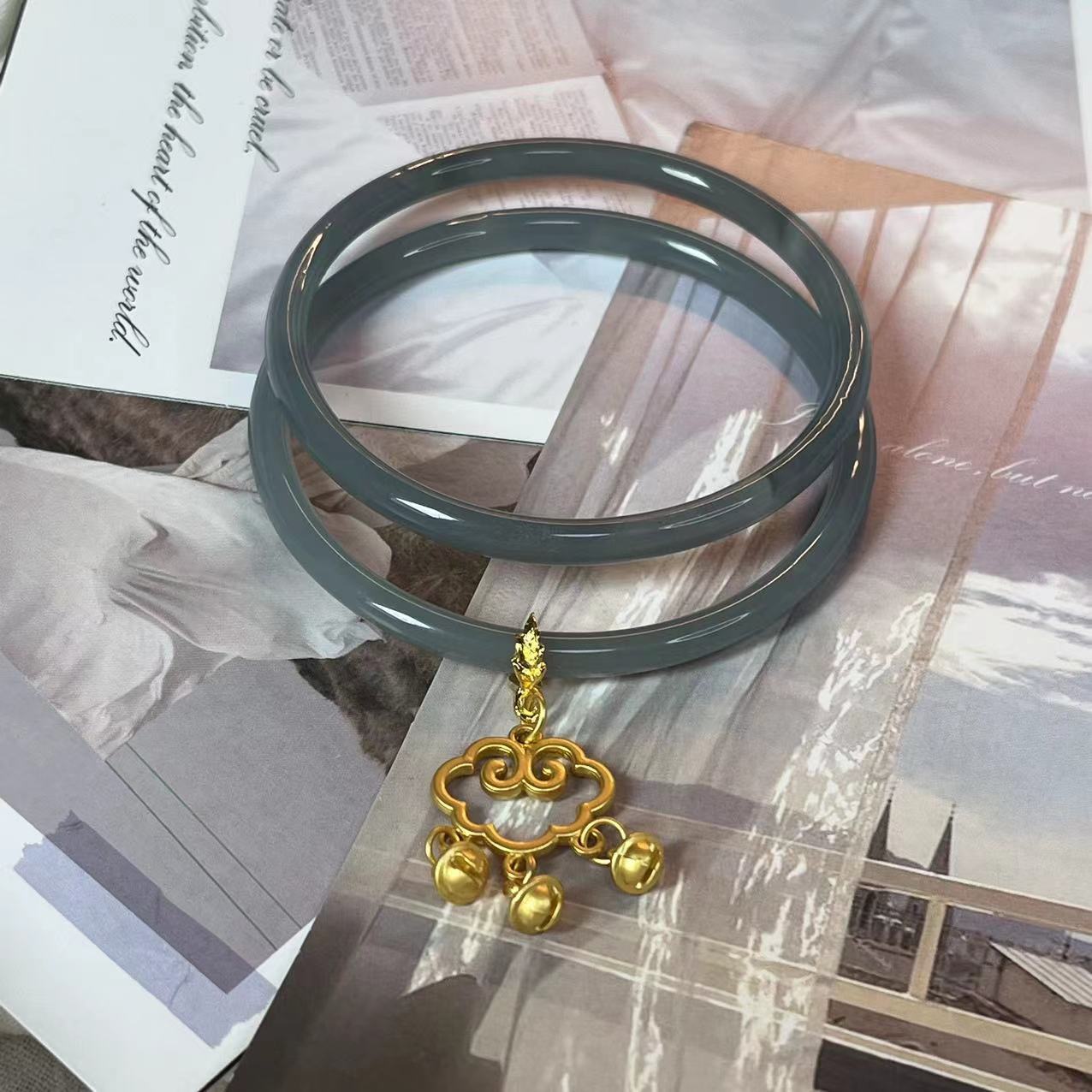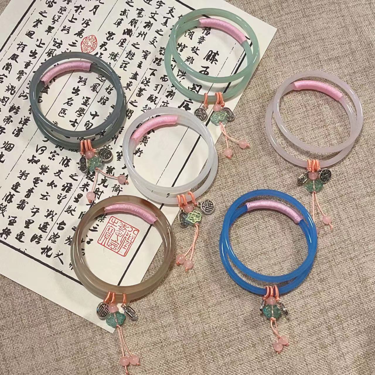 New Chinese-Style Boutique Imitation Chalcedony Bracelet, One-Step Jingle Bracelet, Ice-Transparent Non-Fading Jade Bracelet, Han Dynasty Accessories for Women