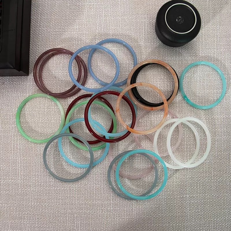 Manufacturer Wholesale Glass Imitation Jade Thin Round Bar Bracelet, One Step at a Time, Jingling Bracelet, Bestie Style Female Bracelet, Xiaohongshu