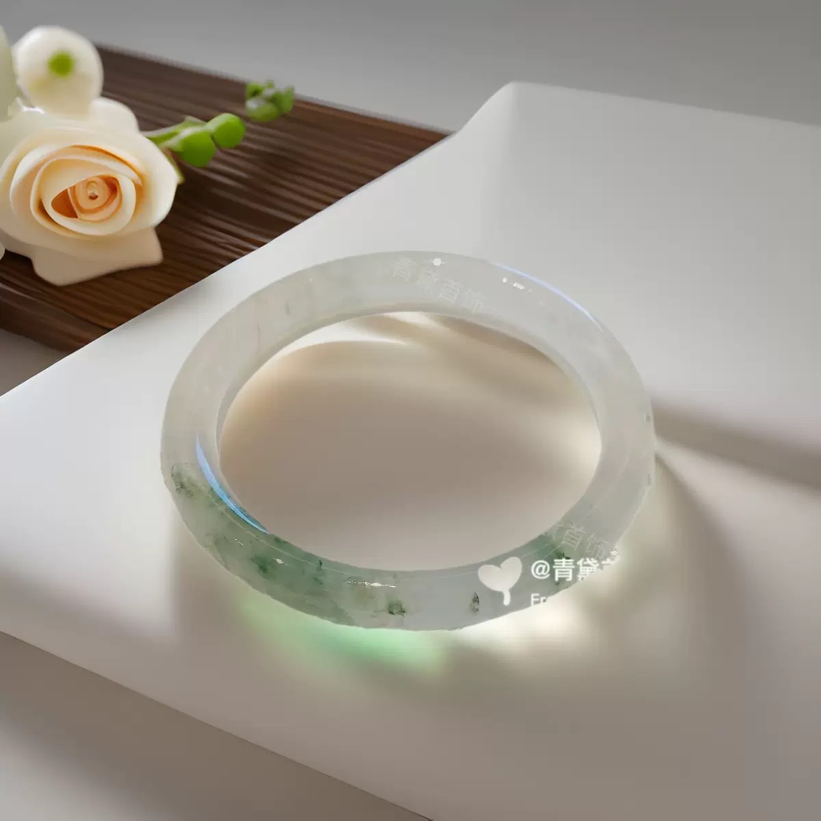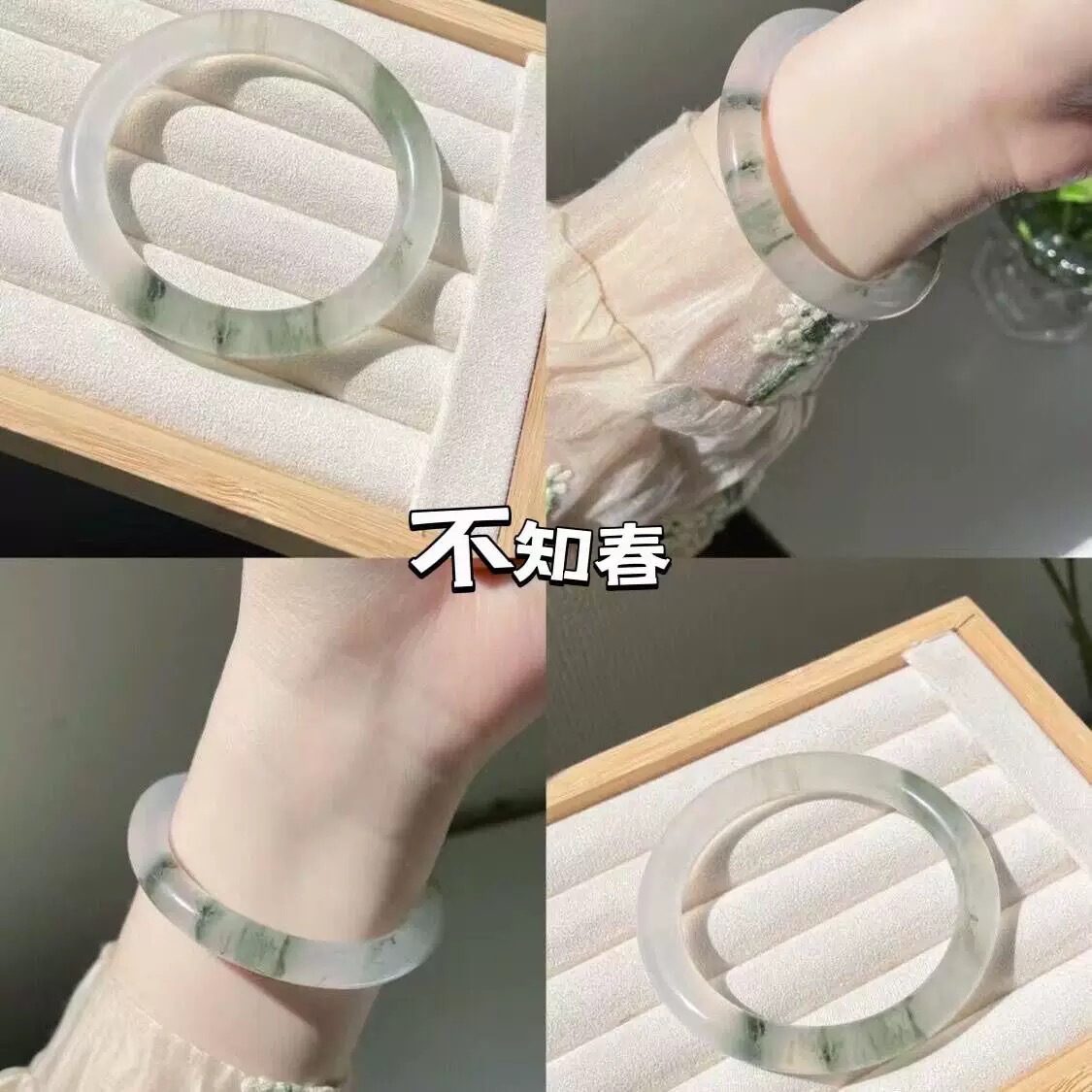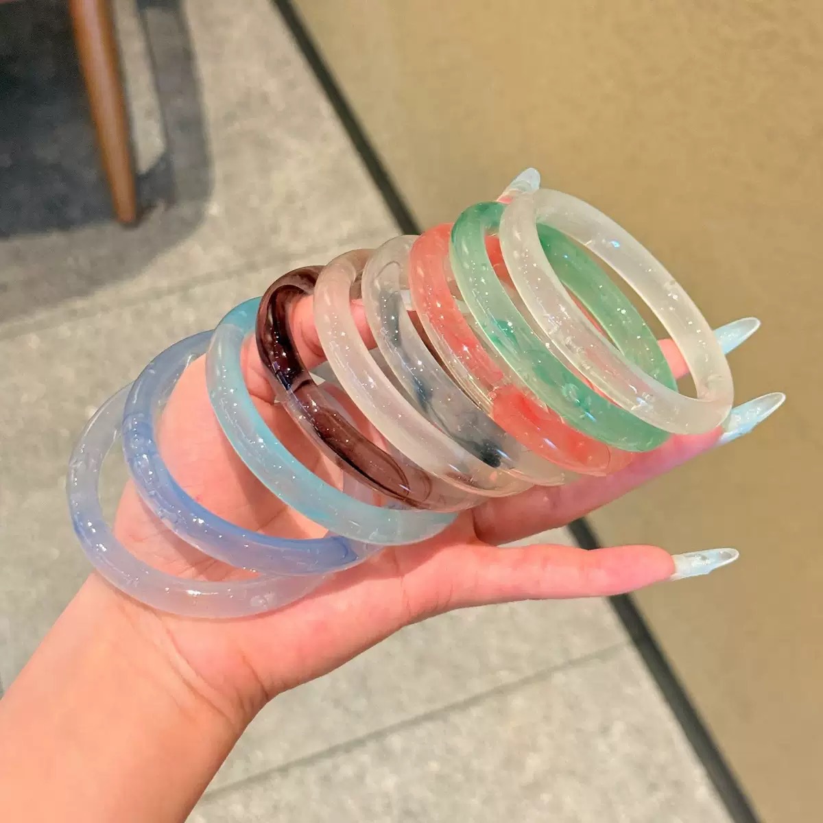 One-Step-At-A-Time Glass Imitation Jade Round Bar Bracelet, Same Style as on Xiaohongshu, Natural Spring Ice Transparent Bracelet for Women, High Ice